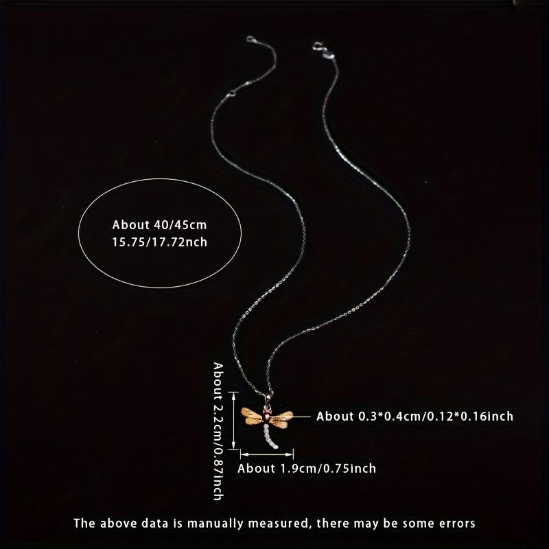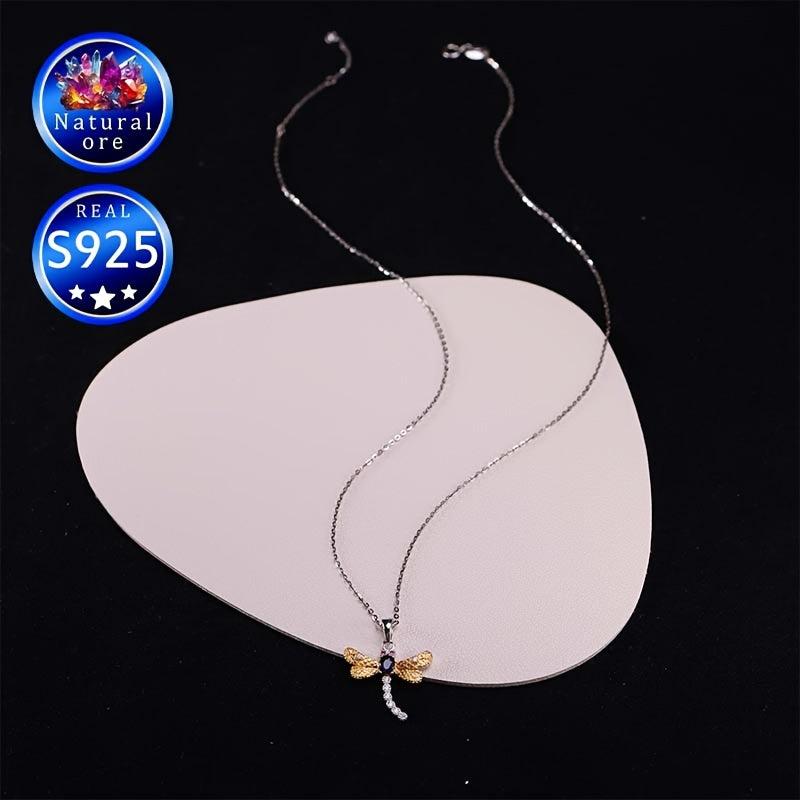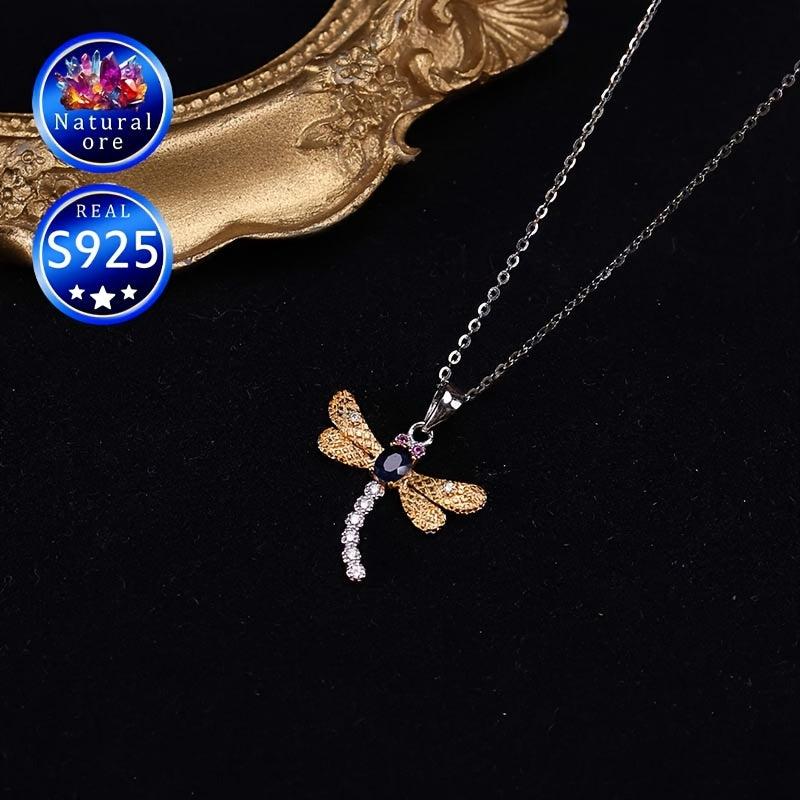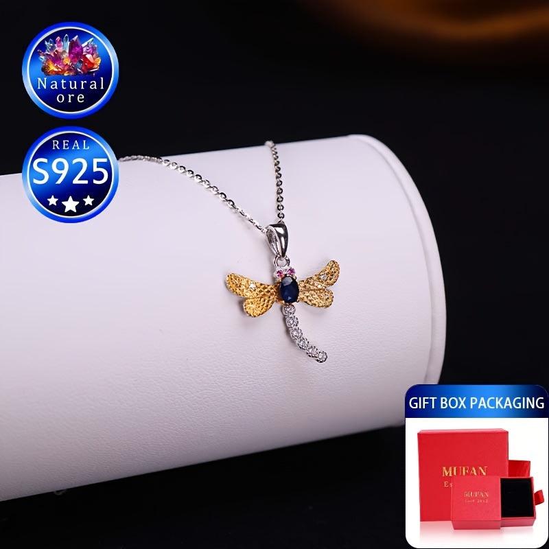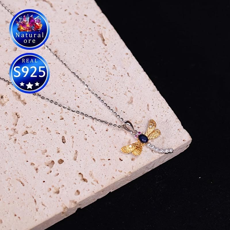 Elegant necklace featuring a dragonfly-shaped pendant with a natural synthetic gemstone, set in high-quality S925 silver. The unique design makes it a perfect gift for her, showcasing random patterns and variations.