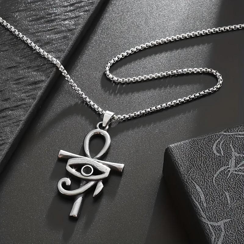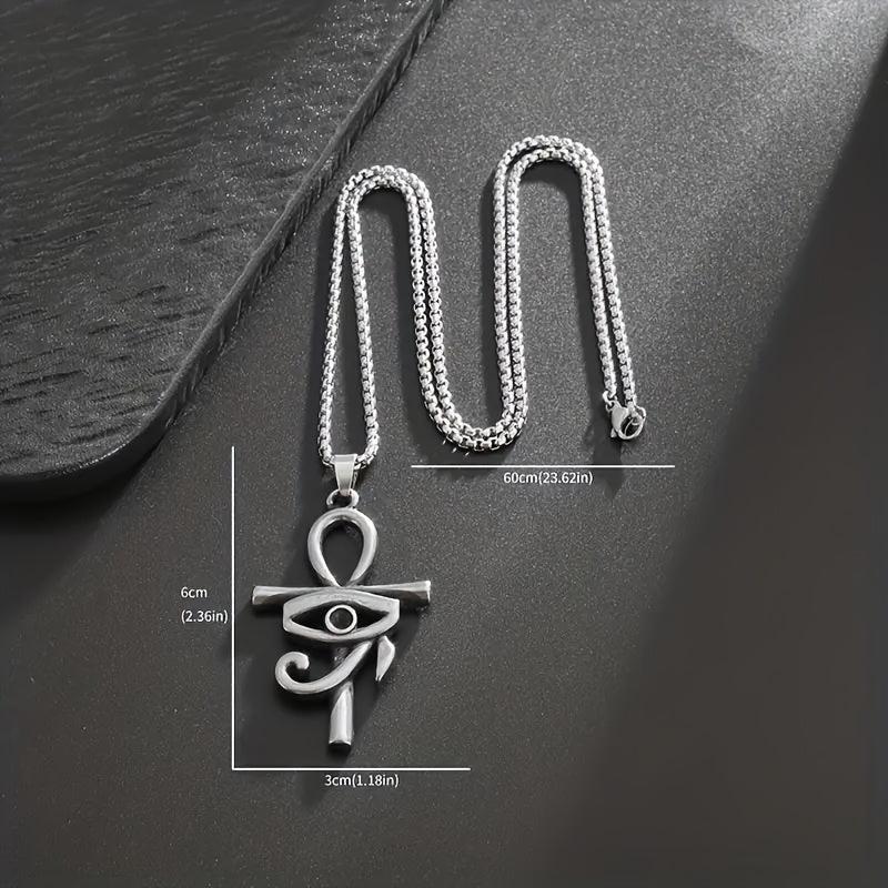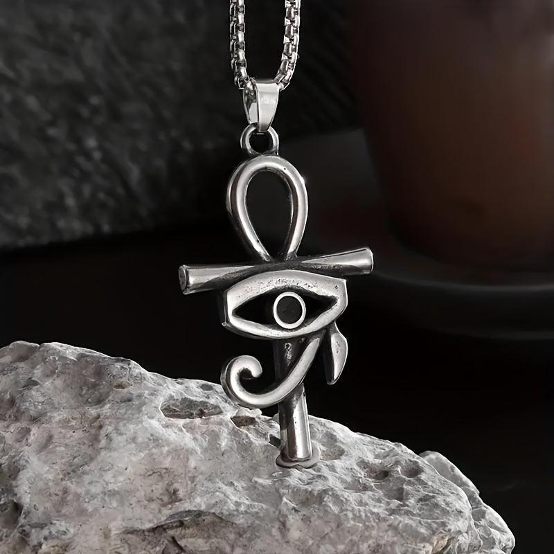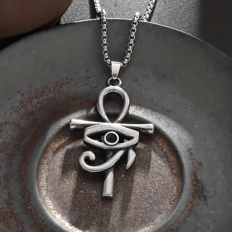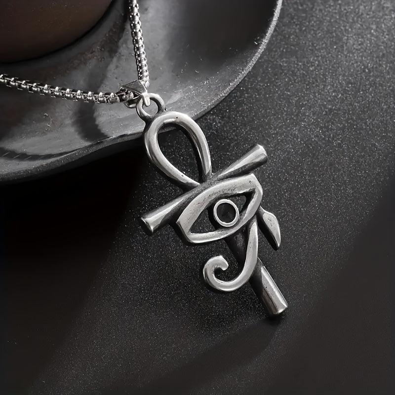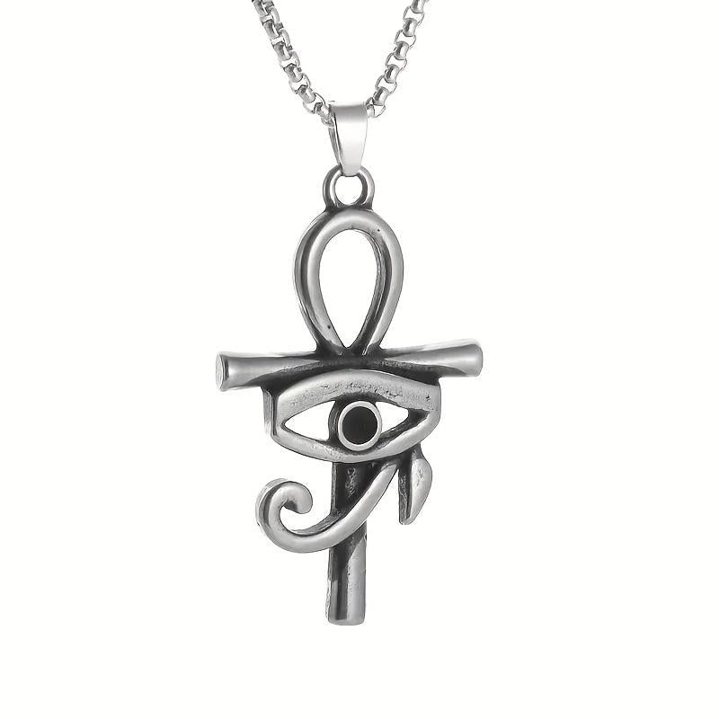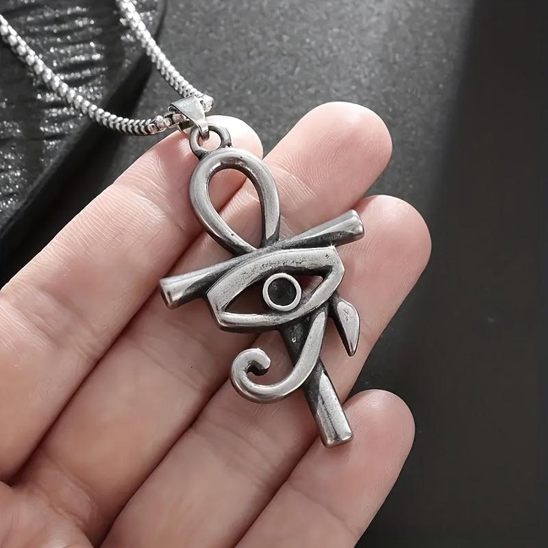 Embrace a retro ethnic style with this ancient Egyptian pendant necklace featuring the Eye of Horus and Ankha cross design. This women's amulet jewelry exudes mystique and elegance.