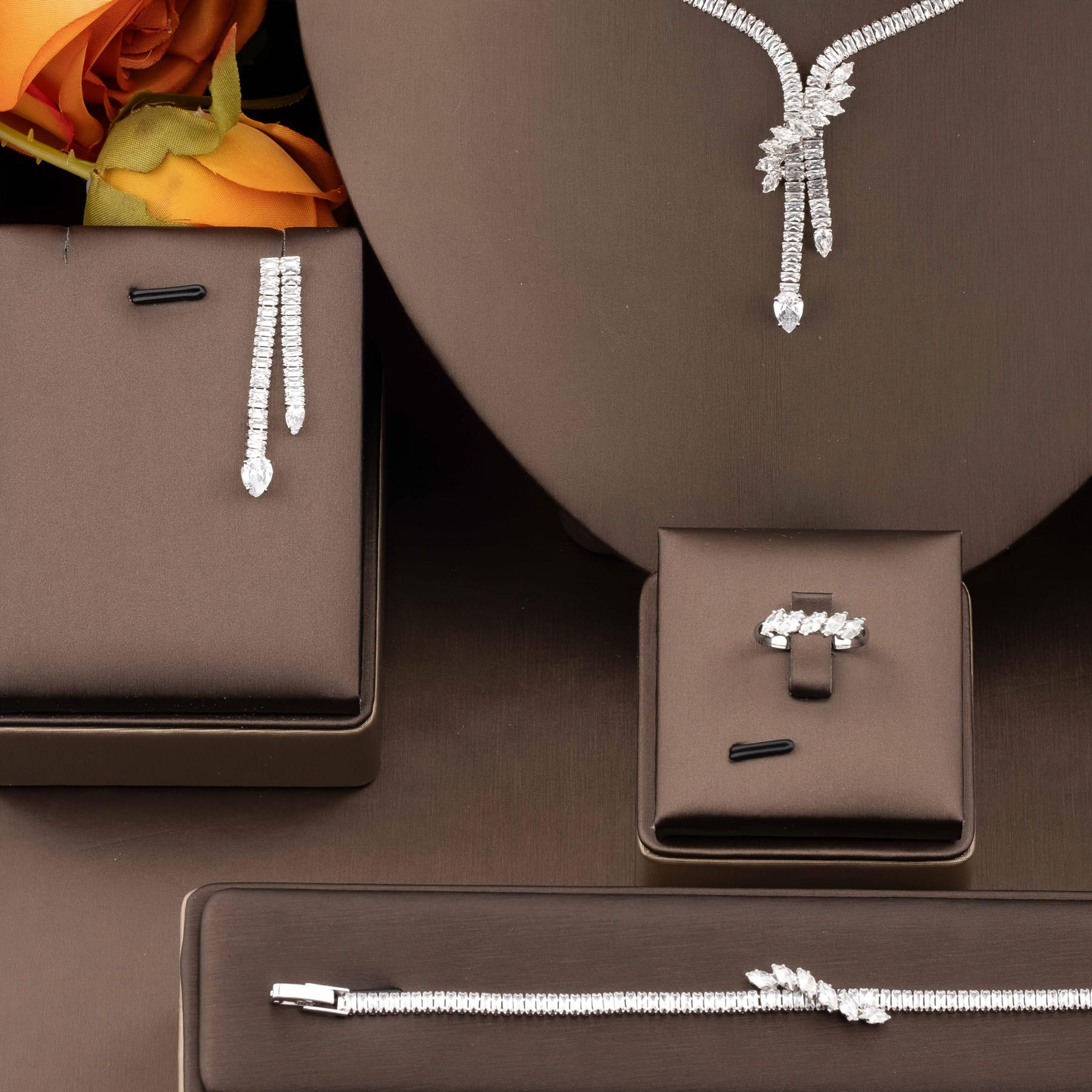 This stunning jewelry set features high-quality cubic zirconia vines, perfect for adding elegance to women's wedding attire. It is suitable for banquets and special occasions.