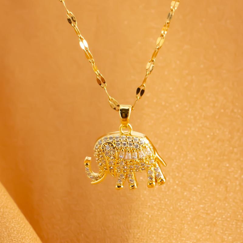 Add a touch of elegance with this hypoallergenic elephant pendant necklace. It features a stunning design with synthetic zirconia stones and is made of durable stainless steel.