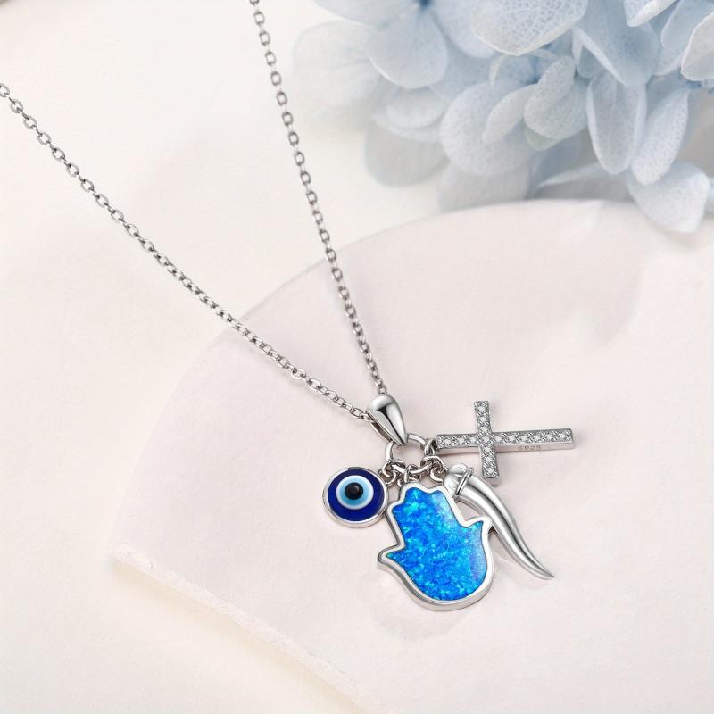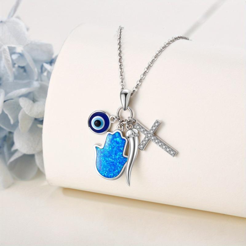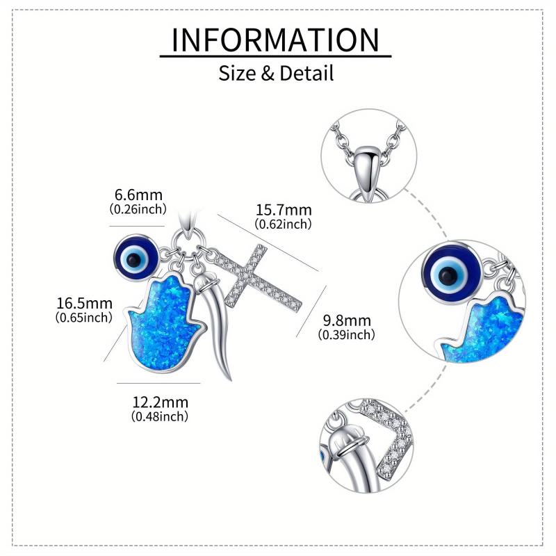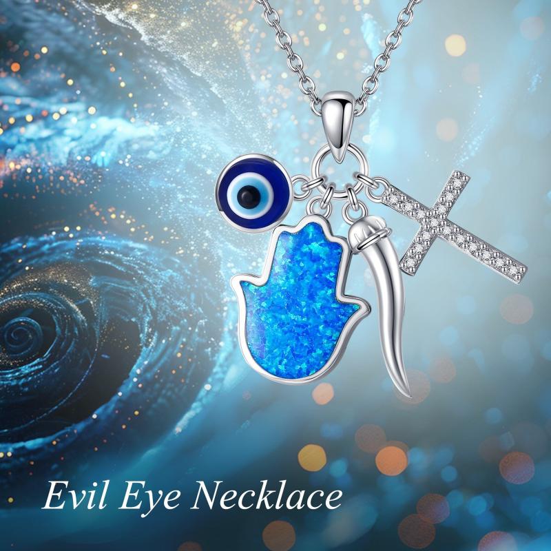 Evil Eye Necklace Sterling Silver Italian Horn Pendant Charm Necklace