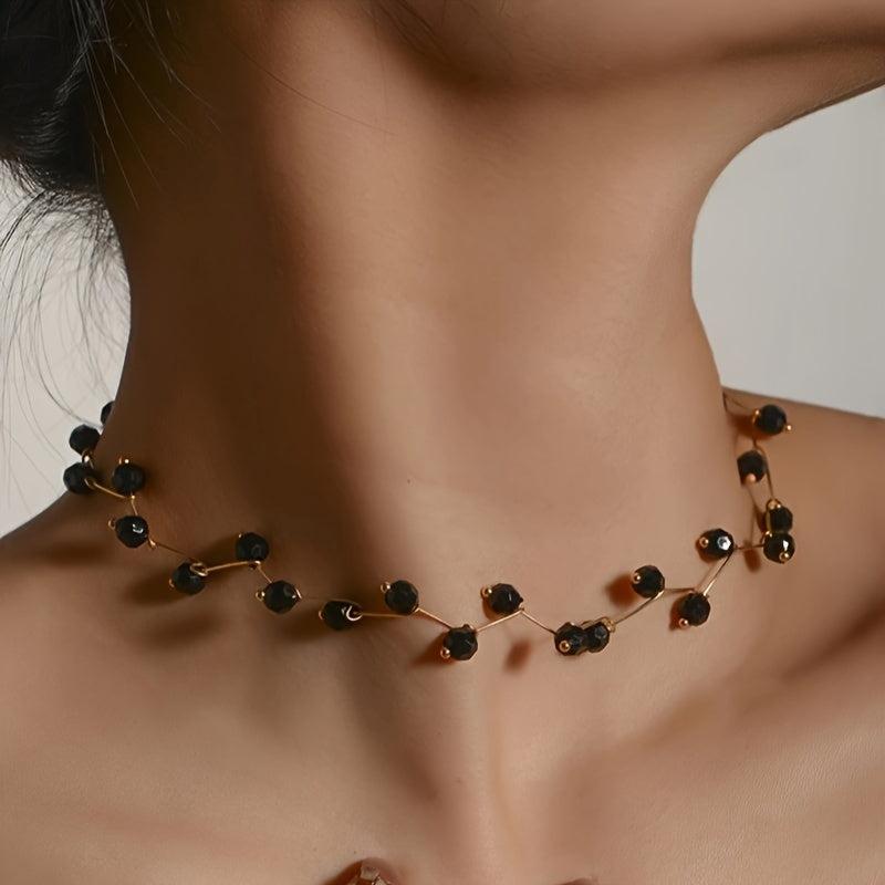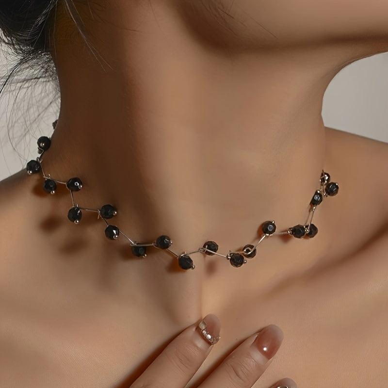 Elegant and stylish collarbone chain necklace with faceted bead design.