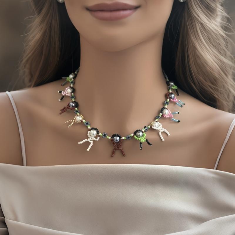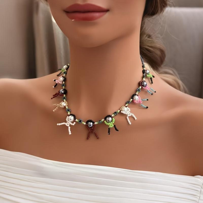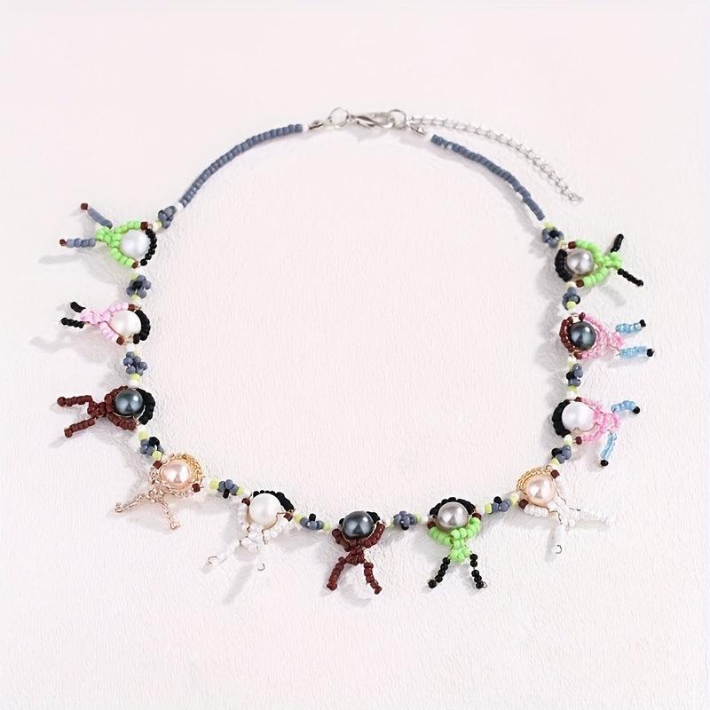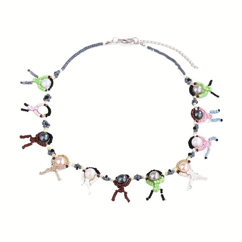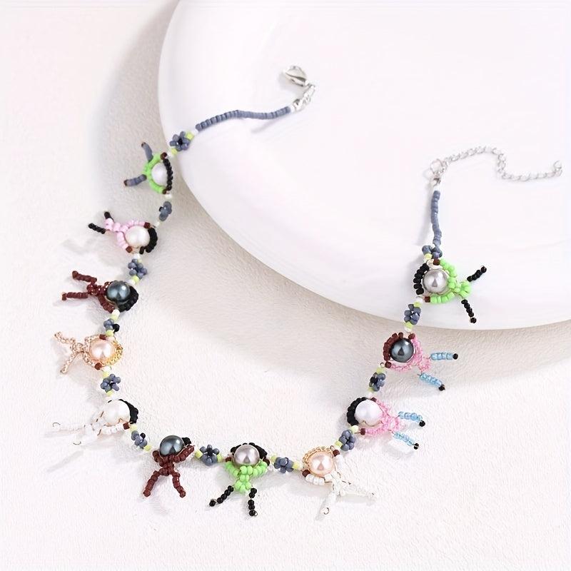 This beaded necklace is inspired by fairy tales, featuring charming angel and floral elements. It adds a whimsical touch to your outfit, perfect for parties and special occasions. A versatile accessory that can elevate any look.