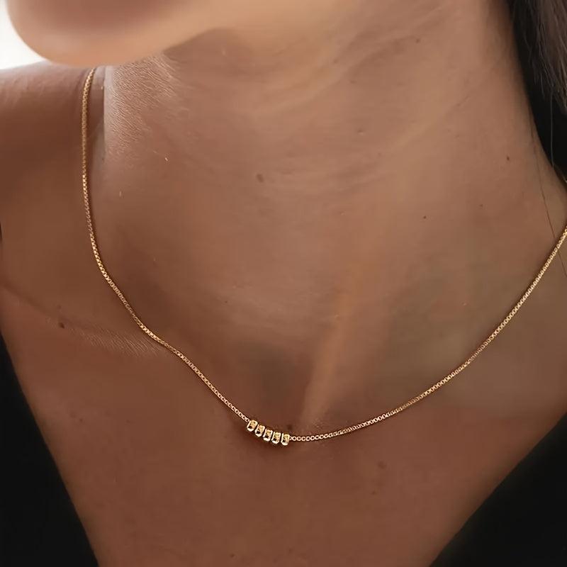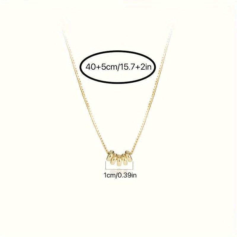 This round bead pendant necklace is versatile and suitable for daily wear. It features five golden beads for added style.