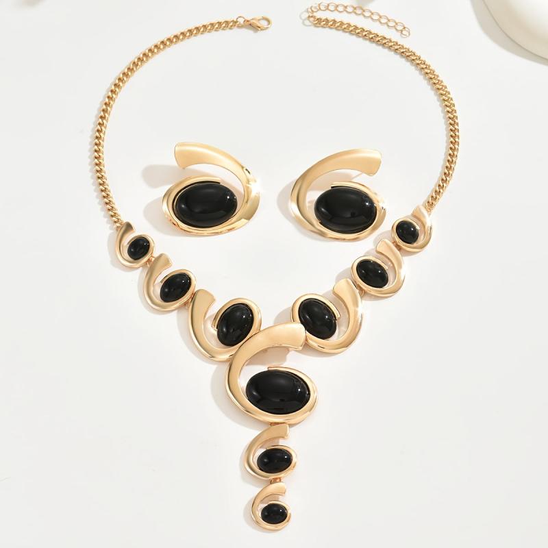 Elevate your style with this classic oval acrylic pendant necklace and earrings set. Made with high-quality zinc alloy chain, this set is perfect for everyday wear or special occasions.