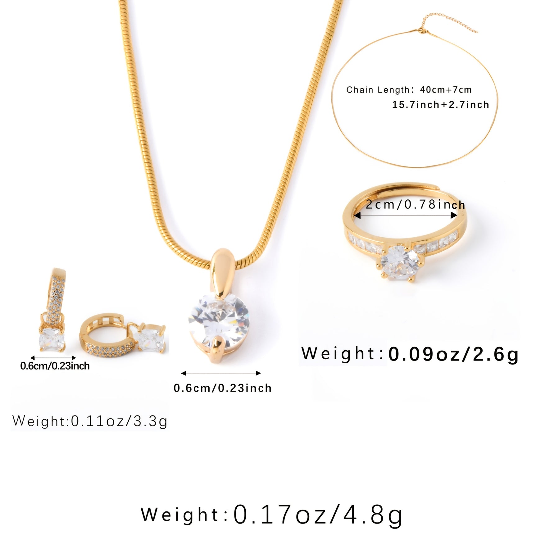 This stunning jewelry set features a necklace, ring, and earrings adorned with synthetic zirconia rounds, perfect for gifting on Christmas, Mother's Day, or birthdays.