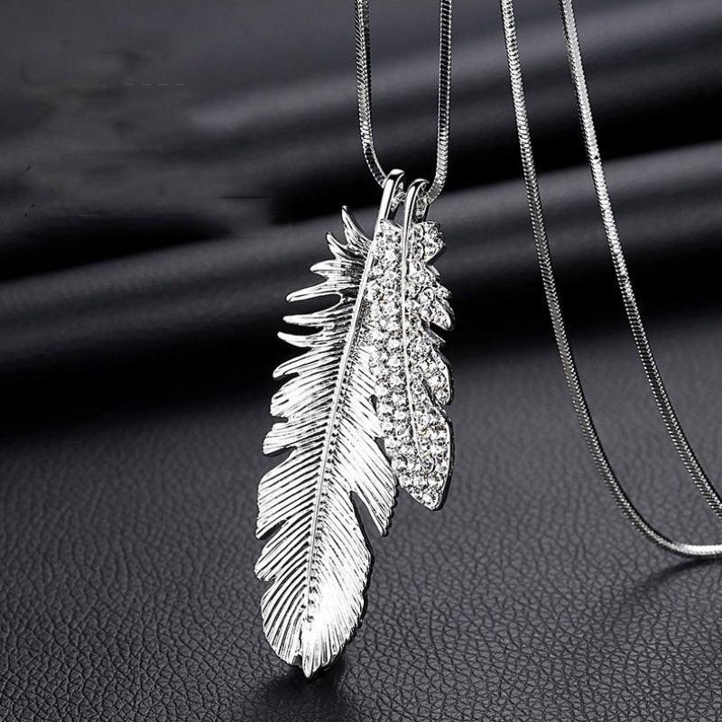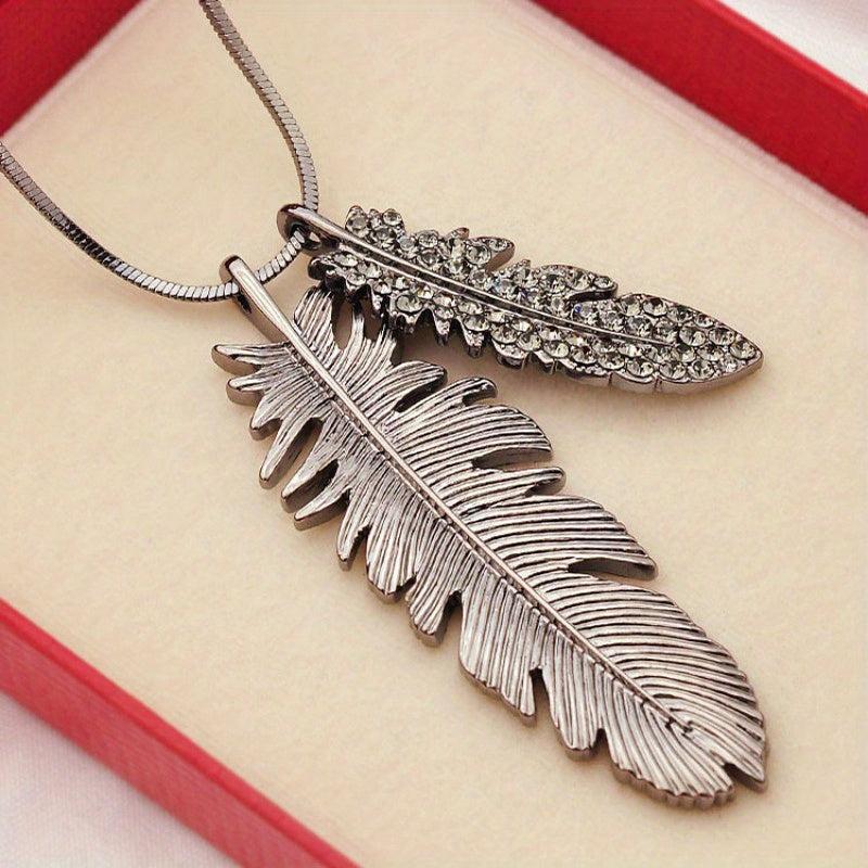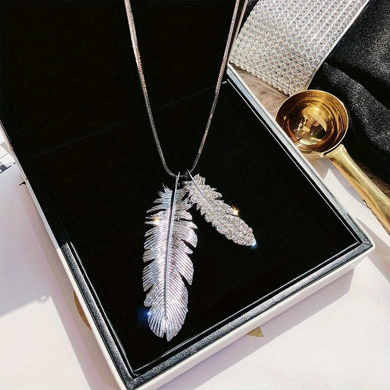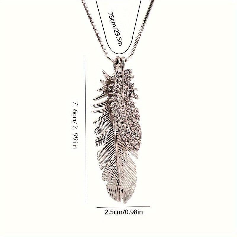 Add a touch of elegance to your casual attire with this feather pendant necklace. Made of zinc alloy with sparkling details, this versatile long chain piece of jewelry will surely catch the eye.
