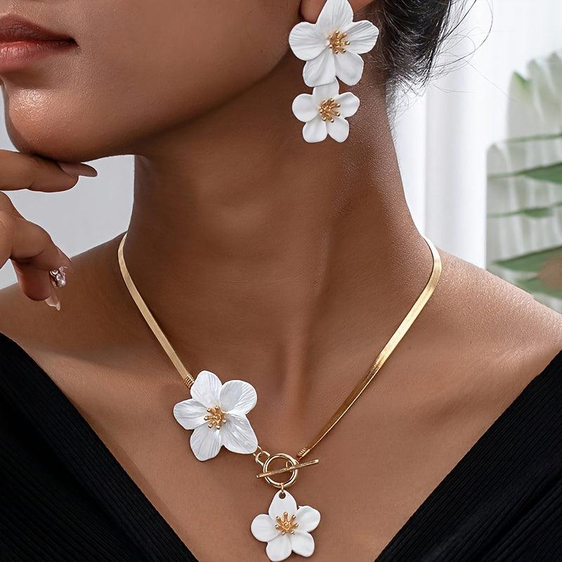 Elevate your style with this elegant floral pendant necklace and earrings set. Perfect for daily wear, parties, holidays, and as a festive gift for women.