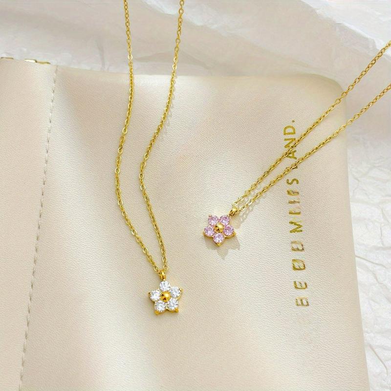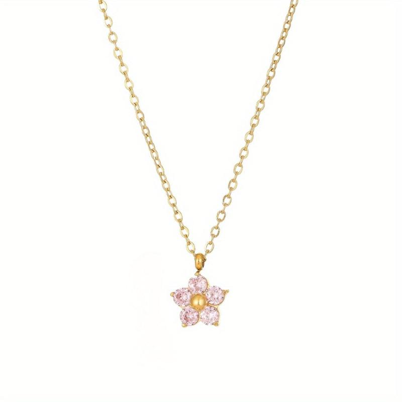 Floral Pendant Necklace Stainless Steel Chain Elegant Jewelry for Women