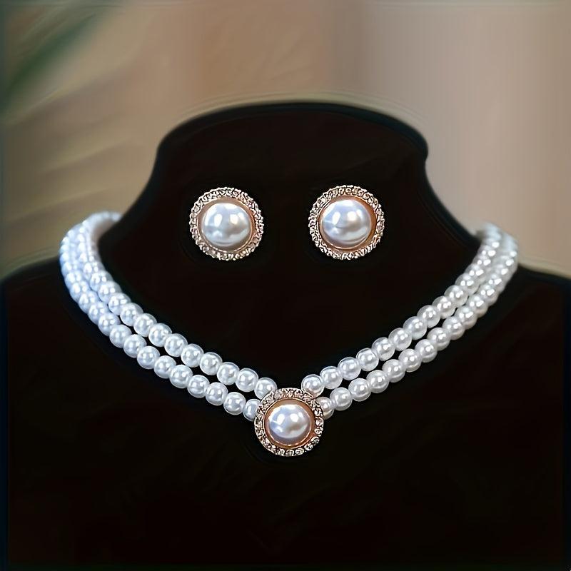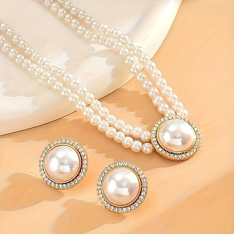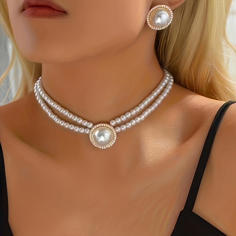 Complete your look with this elegant jewelry set that includes a necklace and earrings. The classic French style design with artificial pearls adds a touch of sophistication to your everyday attire.