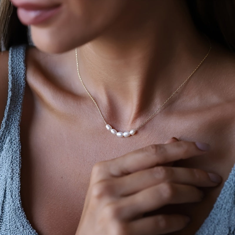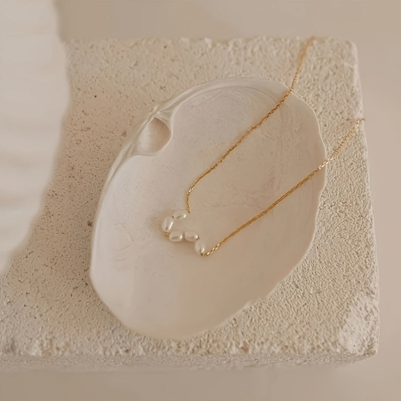 Elegant freshwater pearls pendant necklace with a stainless steel chain, featuring 4 pearls. This piece offers a minimalist and sophisticated look.