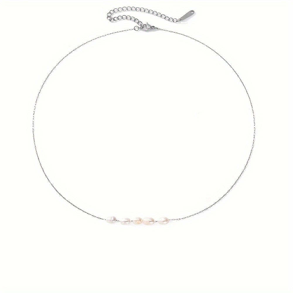 Freshwater Pearls Pendant Necklace Stainless Steel Chain Minimalist Design