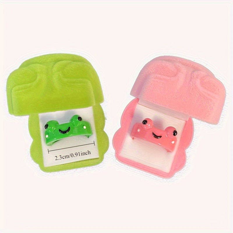 These frog couple rings are perfect as a gift or to add a hip hop style to your look. They are made of plastic and adjustable to fit different sizes.