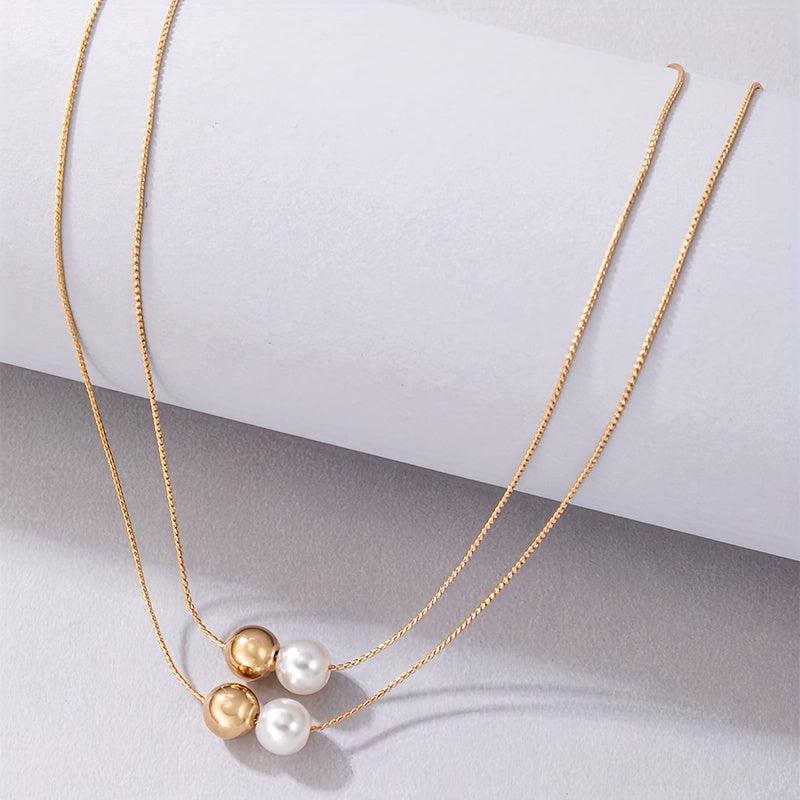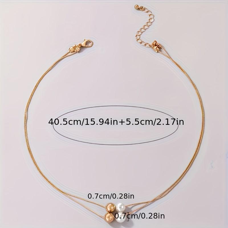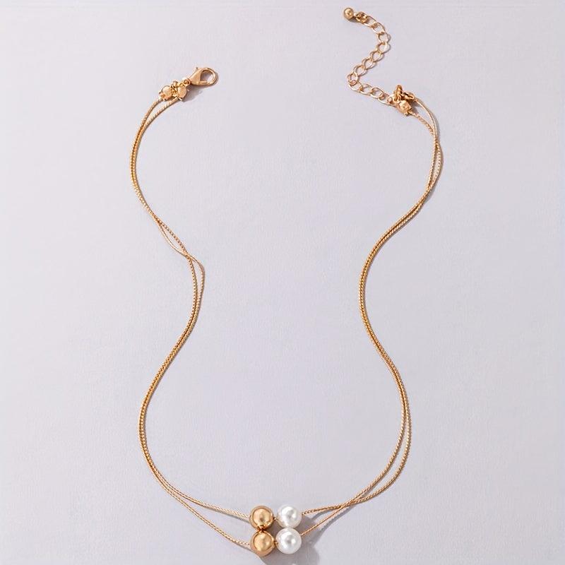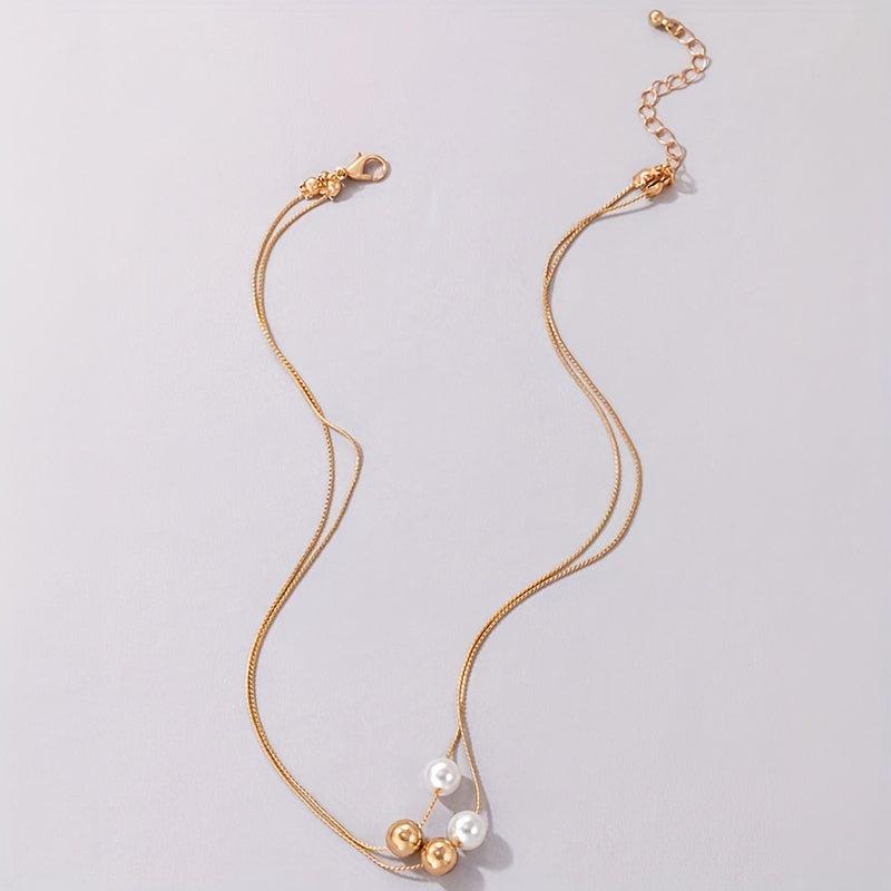 This double layer necklace features a chic design with geometric alloy pendant and faux pearl beads. It is perfect for adding a touch of elegance to your outfit.