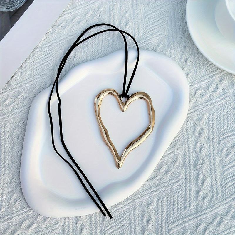 Make a bold statement with this minimalist hip hop necklace featuring a geometric heart pendant in golden tone metal. Perfect for parties or casual attire.