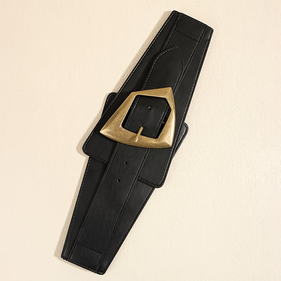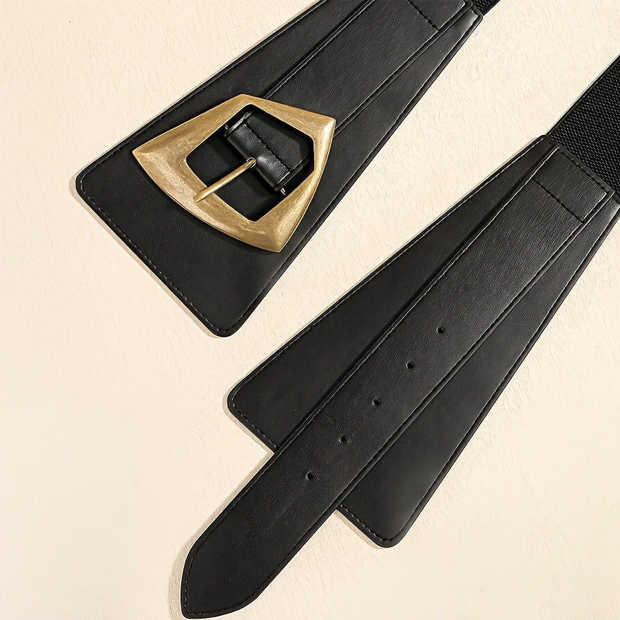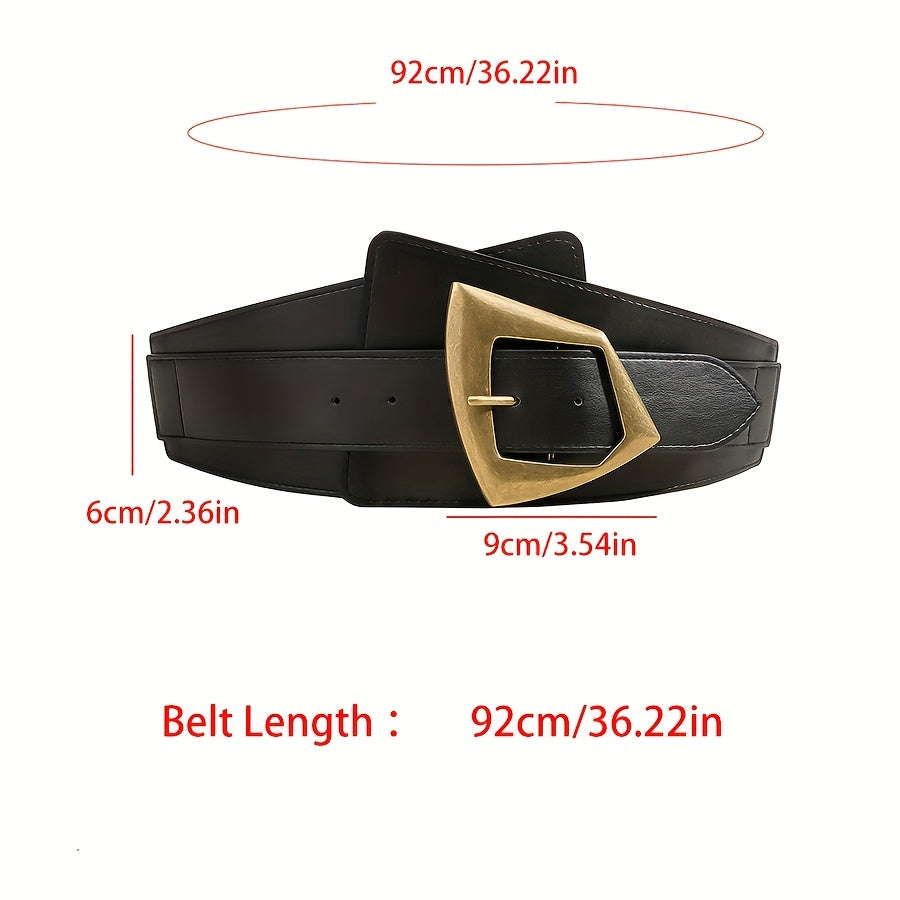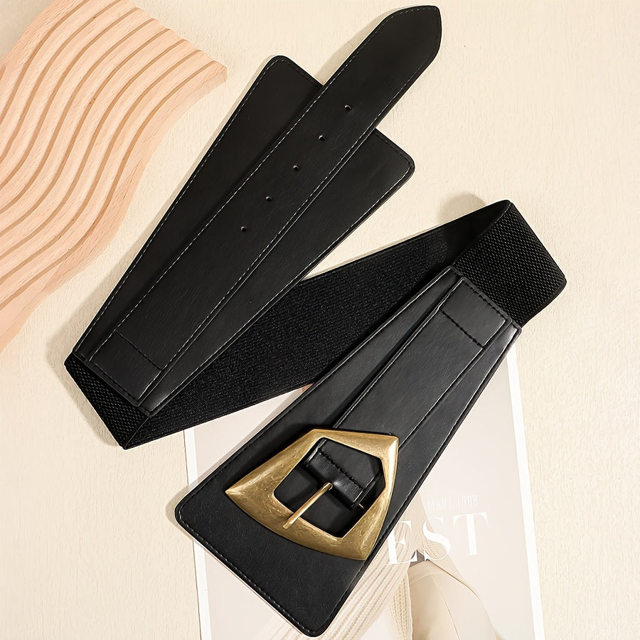 This fashionable elastic belt with a geometric metal buckle is perfect for deep winter outfits. Keep your waist stylish and warm with this versatile accessory.