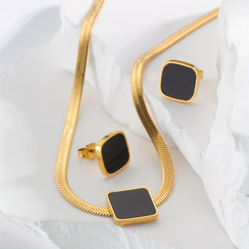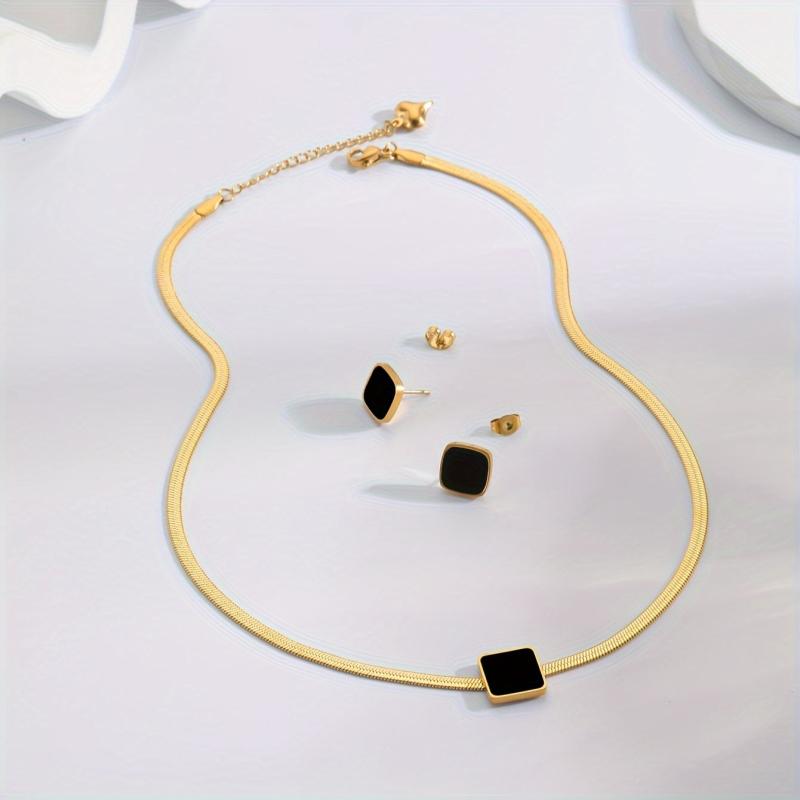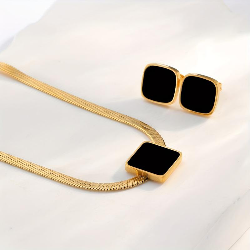Geometric Stainless Steel Pendant Necklace and Earrings Set