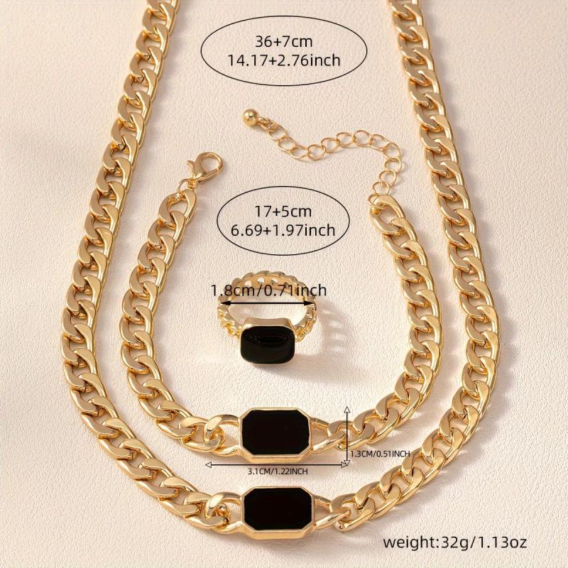 Complete your outfit with this elegant set of three. The geometric rectangular design of the necklace and earrings creates a stylish look that is perfect for any occasion.