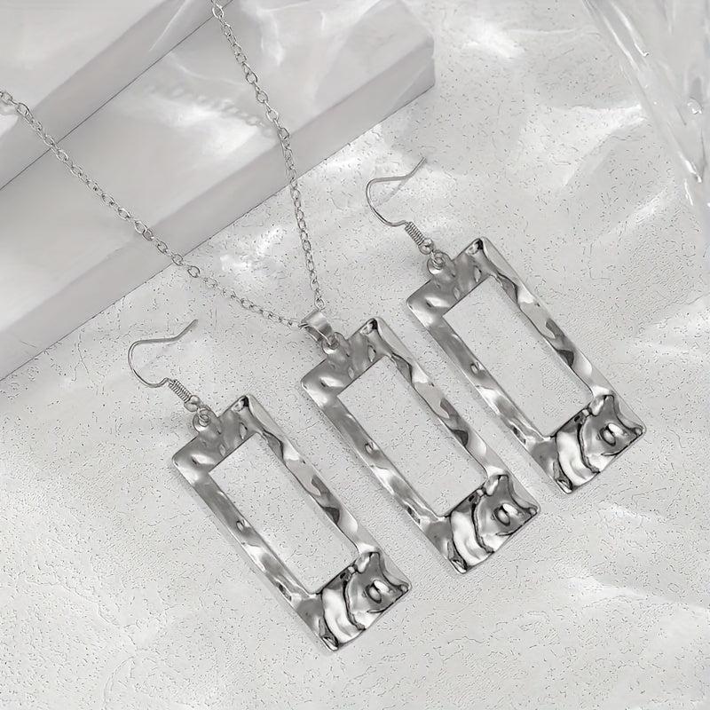 Upgrade your accessory collection with this classic zinc alloy jewelry set. Featuring geometric rectangular earrings and necklace, this set is perfect for daily wear and is versatile for all seasons with no stone inlay.