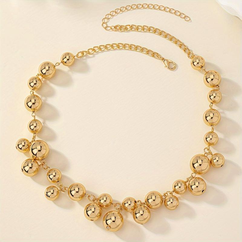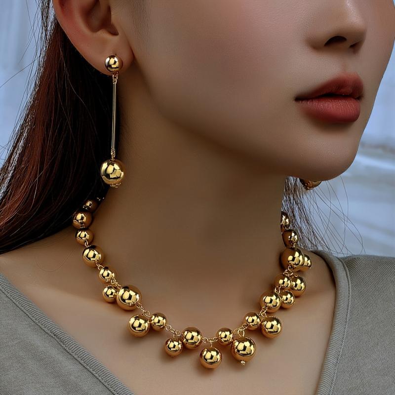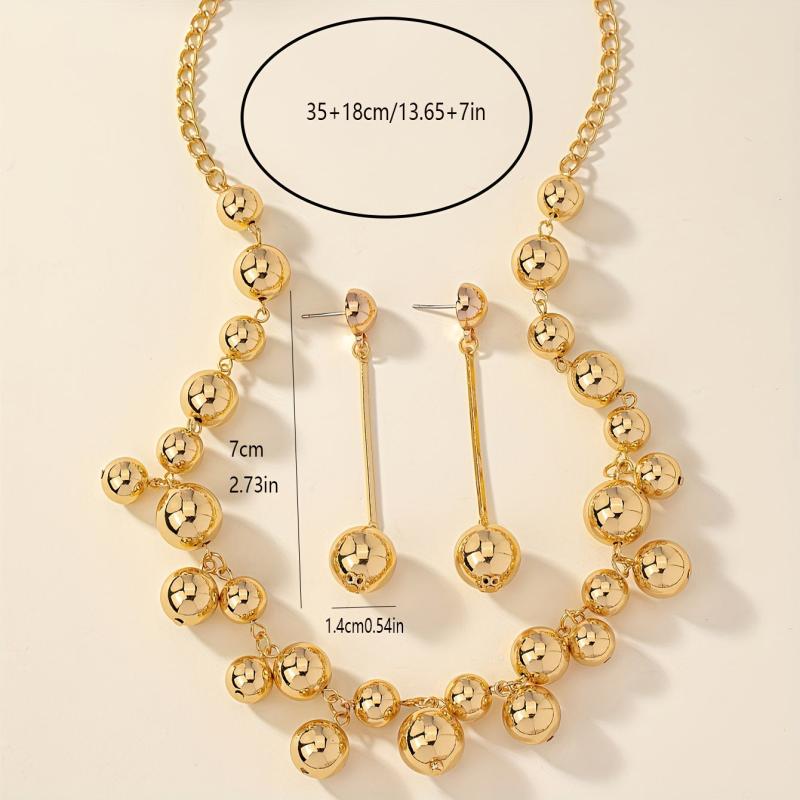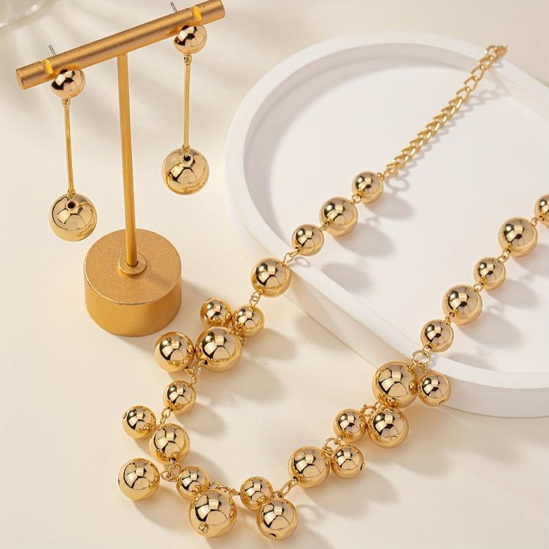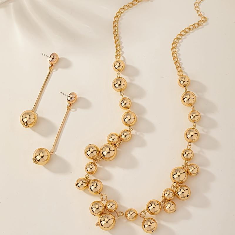 Elegant jewelry set featuring round acrylic beads plated in golden, ideal for banquets, parties, and festivals. Suitable for all occasions.