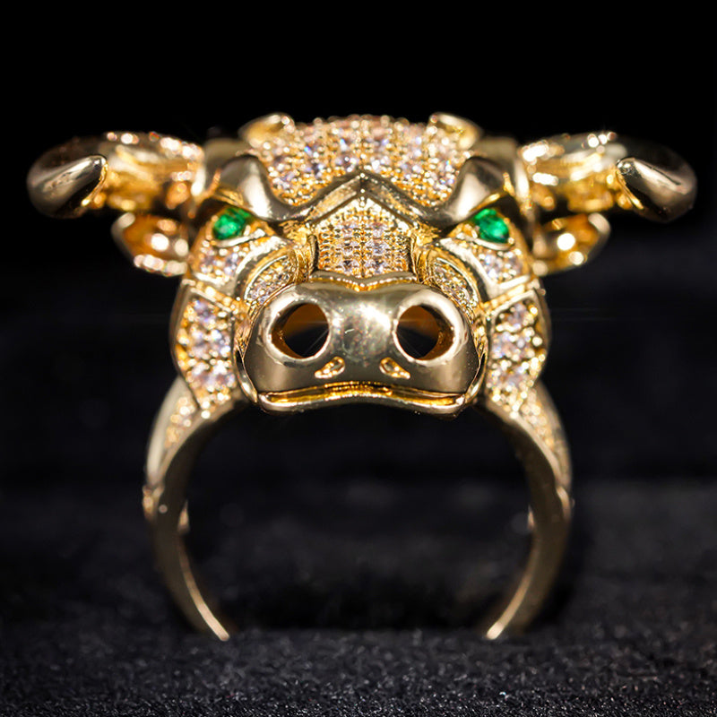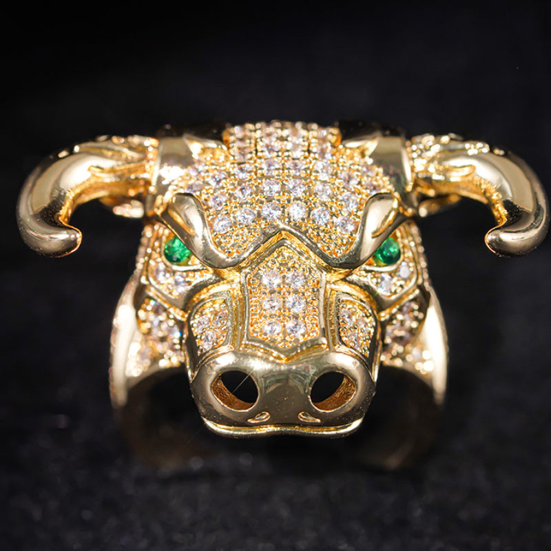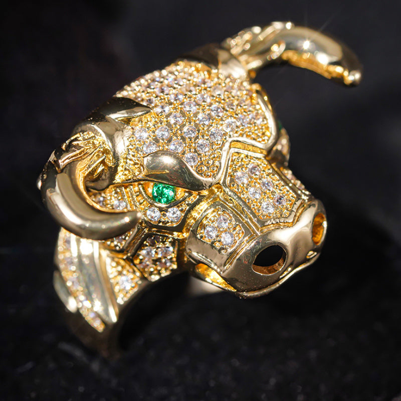 Golden Bullhead Ring with Zirconia Sparkle Ideal for Parties & Banquets