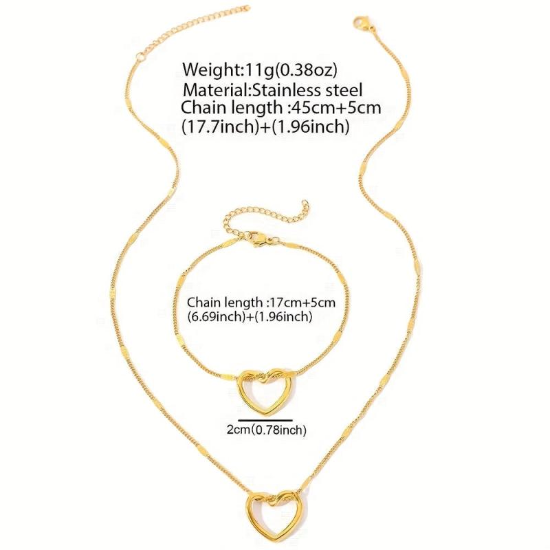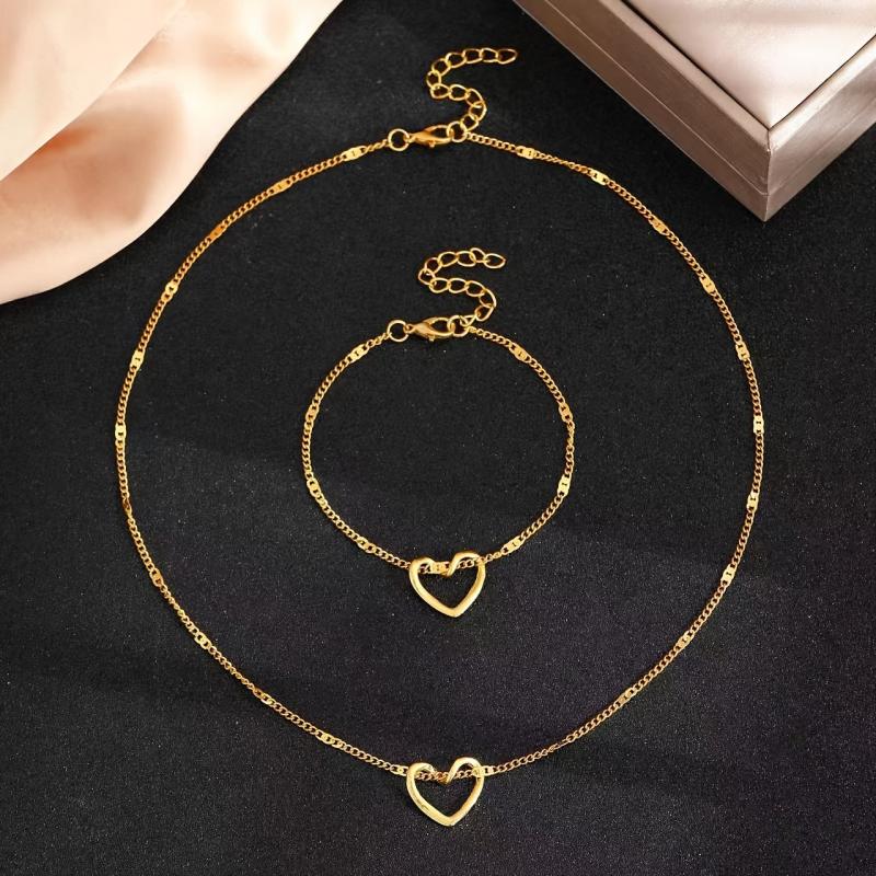 This set includes a golden heart pendant bracelet and necklace made of stainless steel and copper alloy. Perfect for daily wear and holiday occasions, this set complements casual attire effortlessly.