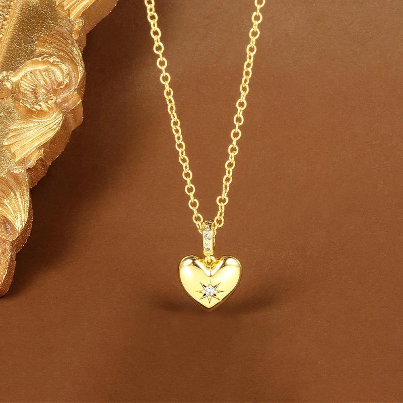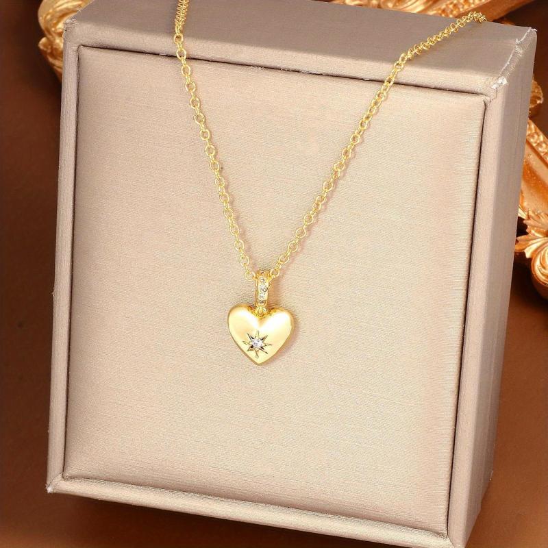 Add a touch of elegance to your look with this heart pendant necklace featuring sparkling synthetic zirconia. Suitable for both casual and formal occasions.