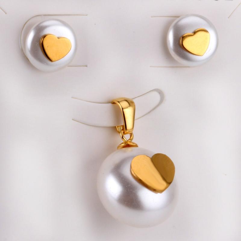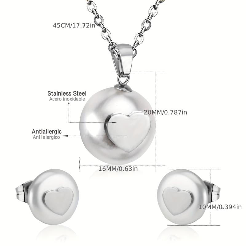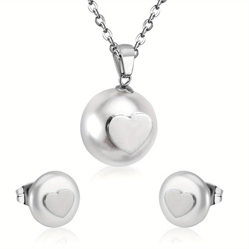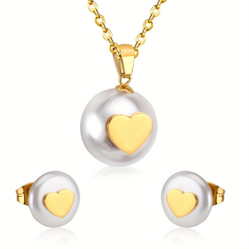 This 3-piece stainless steel set features a niche high-end style with a golden love inlaid cut pendant necklace and matching earrings. Perfect for banquets and weddings.