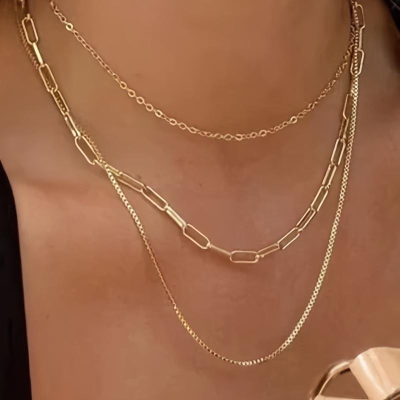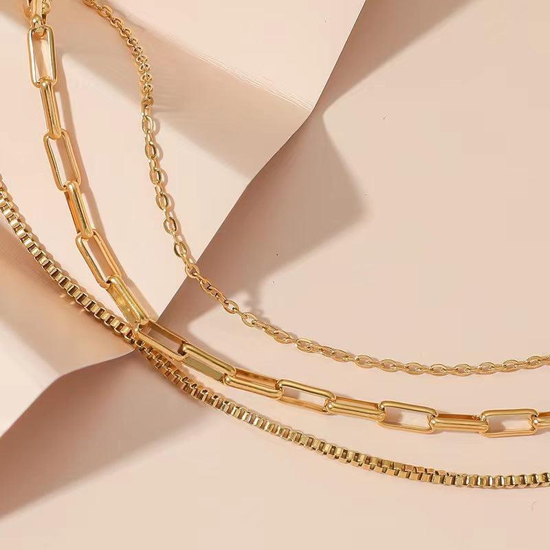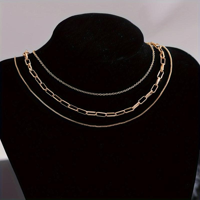 Elevate your style with this 3-piece minimalist necklace set made from stainless steel. Versatile and hip hop inspired, perfect for layering.