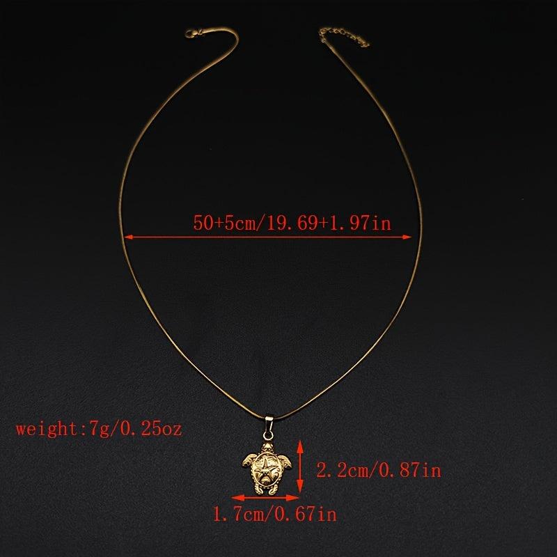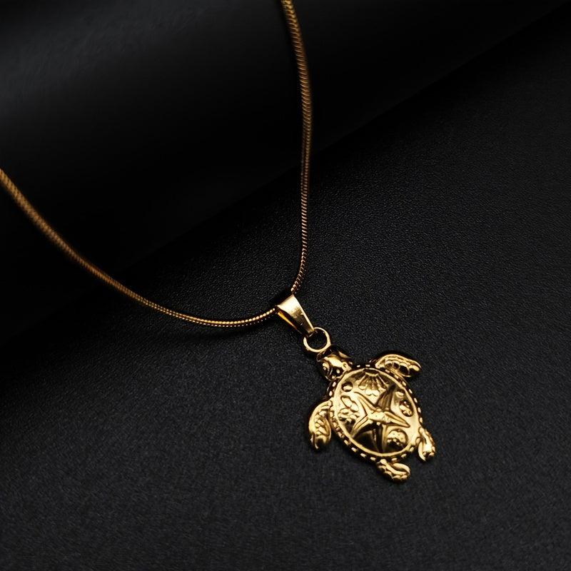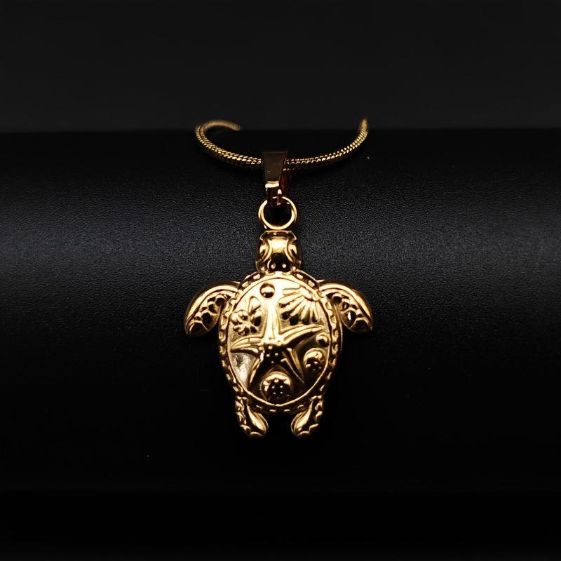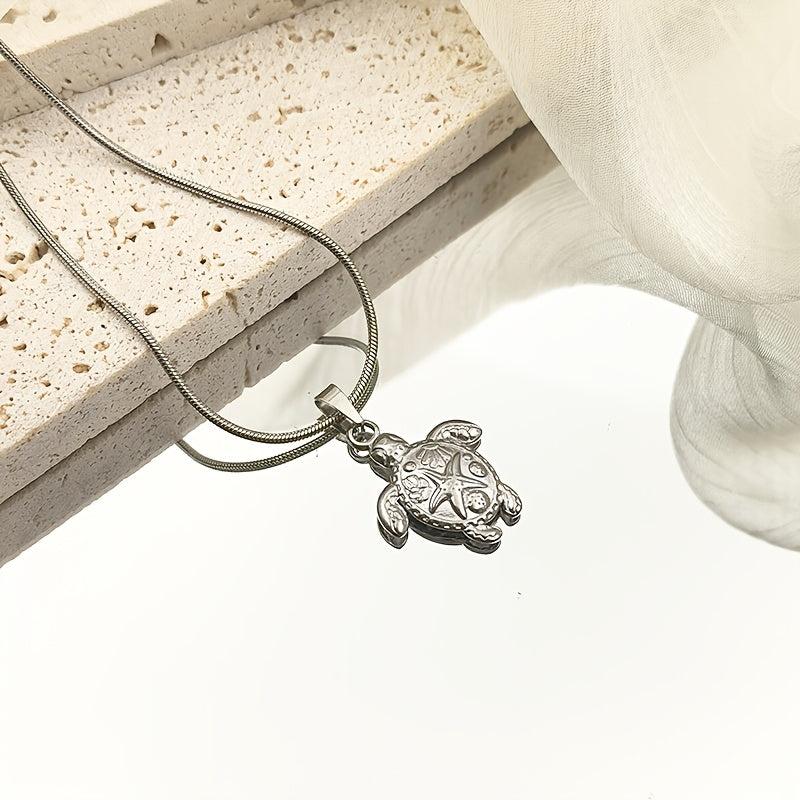 Embrace the bohemian beach vibes with this stunning stainless steel necklace featuring a sea turtle pendant and starfish charm. The intricate shell and wave design add a touch of elegance to your ensemble.
