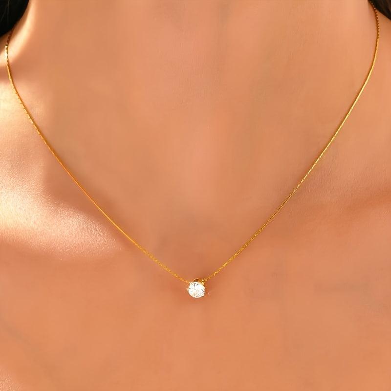 Add a touch of sophistication with this golden tone sparkling synthetic necklace. Versatile for daily wear and parties.