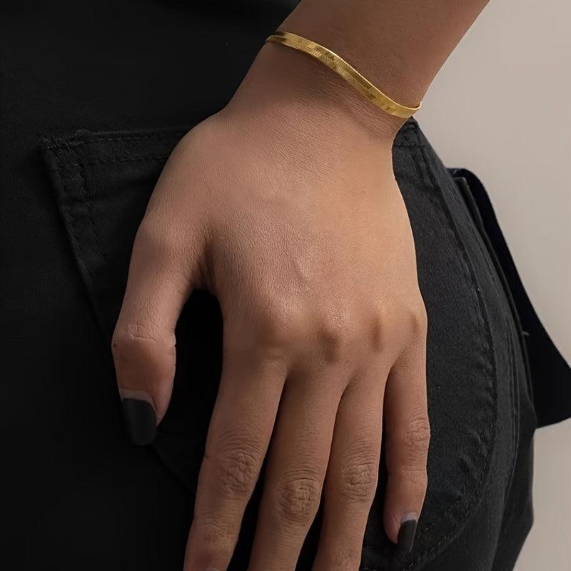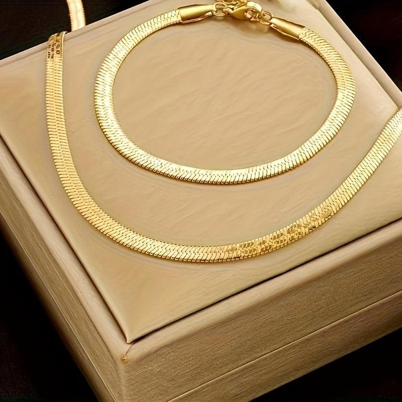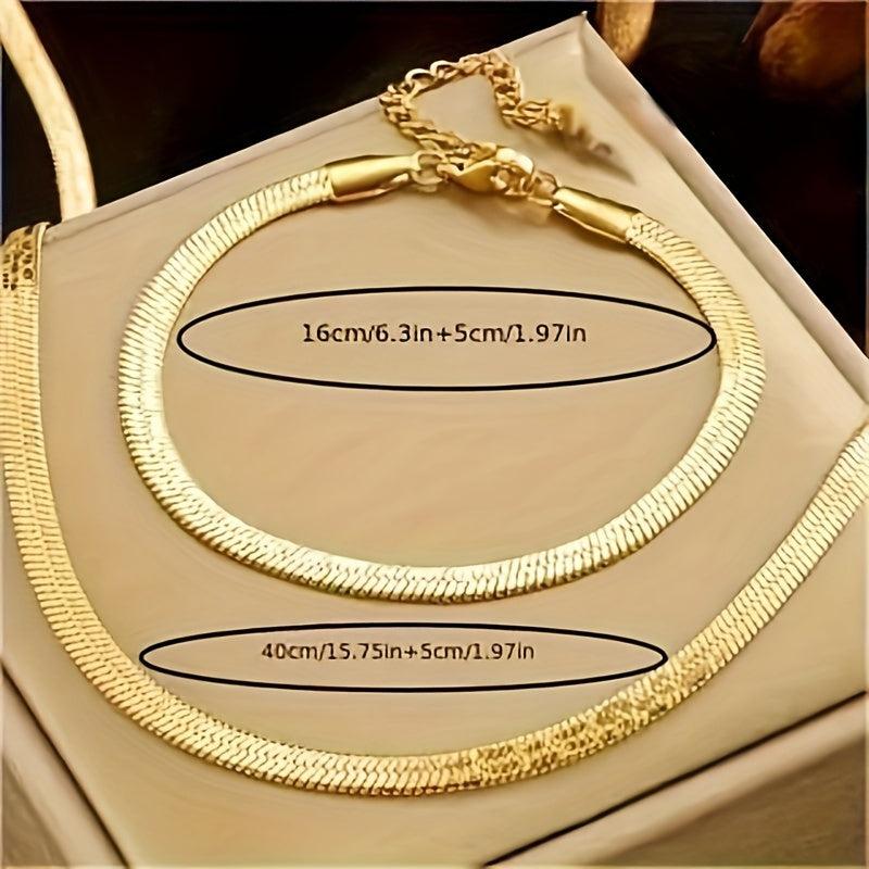 Golden Stainless Steel Jewelry Set Braided Print Necklace Bracelet