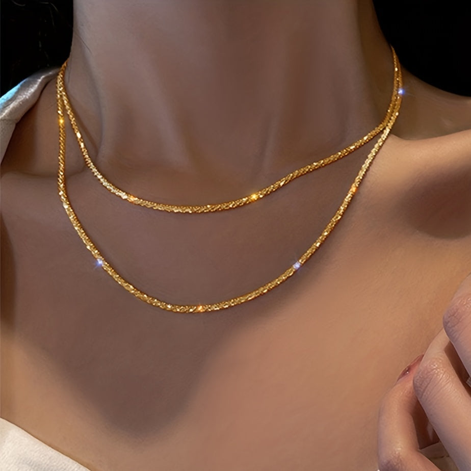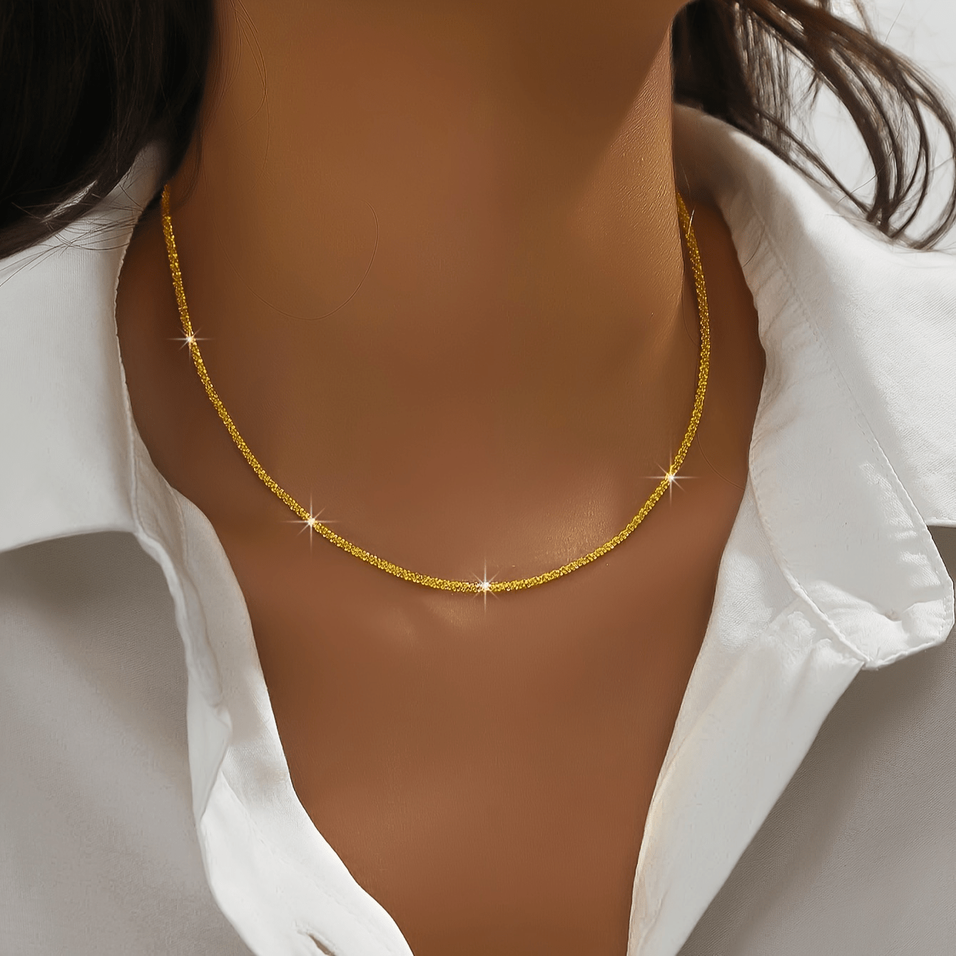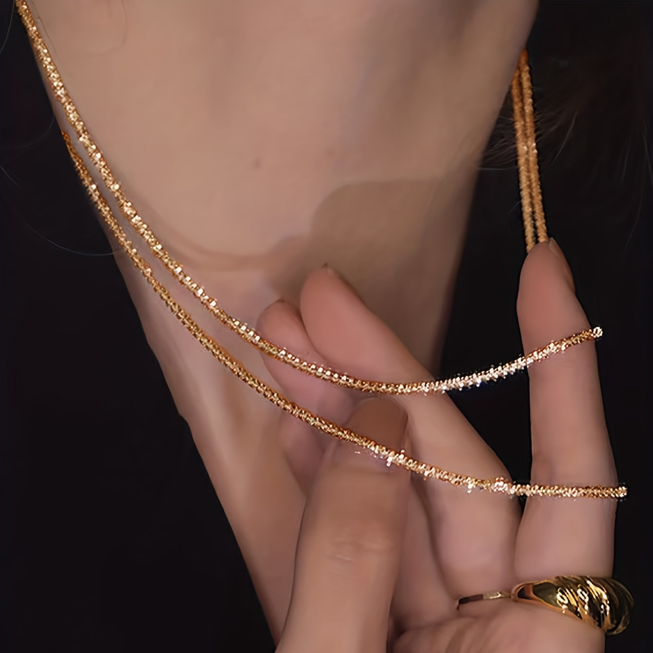 This exquisite pendant necklace features a golden starry sky design on a 2mm velvet-like stainless steel chain. Perfect for parties and banquets.