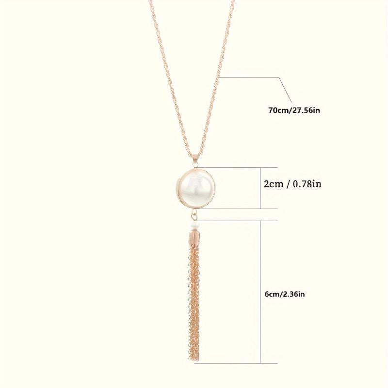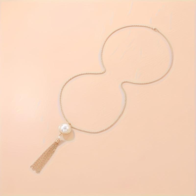 Add a touch of elegance to your outfit with this golden pendant necklace featuring a twisted chain tassel and semi-circular artificial pearl. Perfect for daily wear.