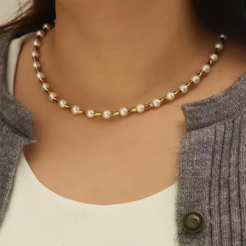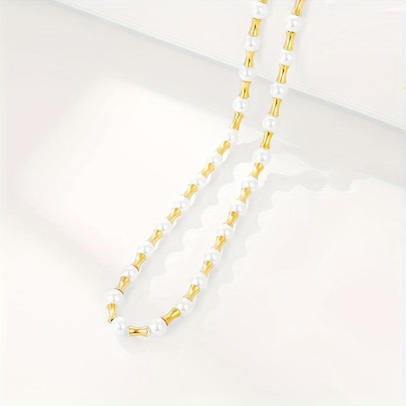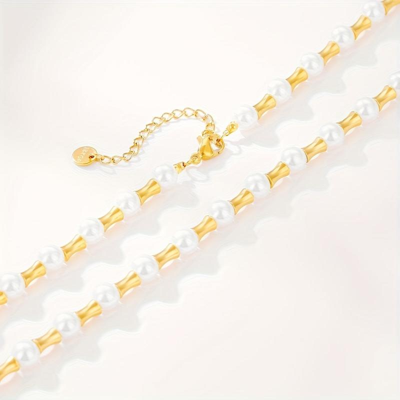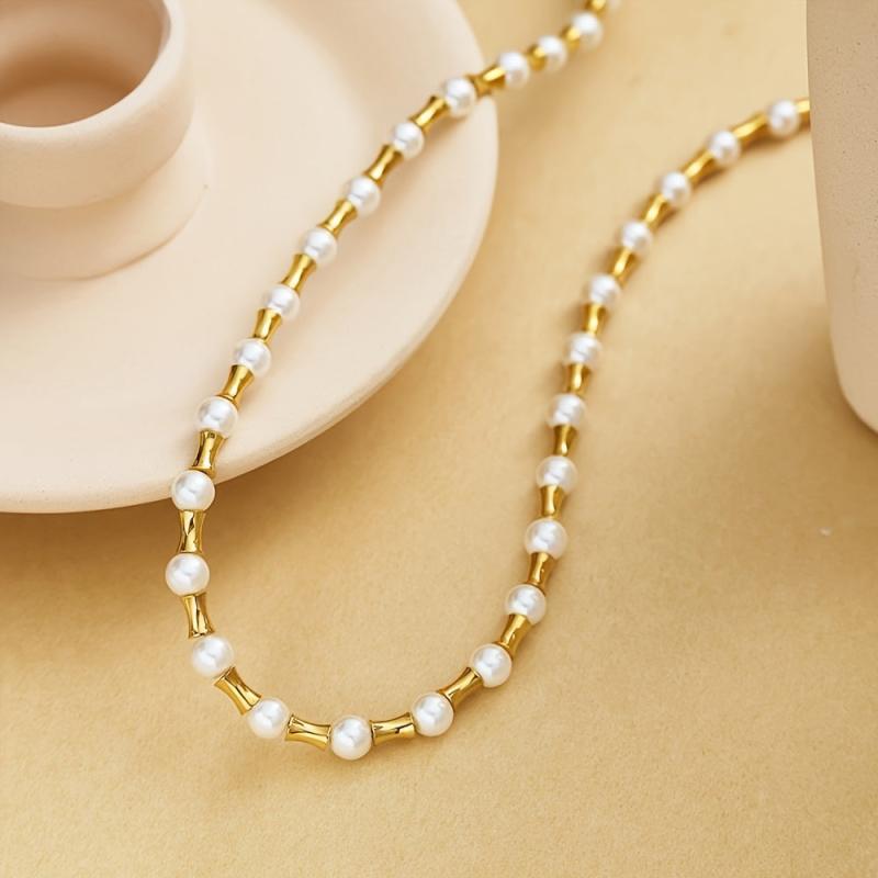 Elegant and versatile, this necklace features freshwater pearls on a titanium steel chain. Ideal for banquets or as a Valentine's gift.