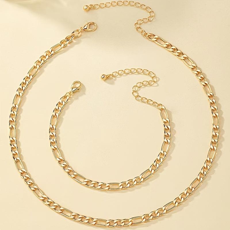 Elegant 2pcs set of a necklace and bracelet in gold, perfect for daily wear, weddings, and parties.