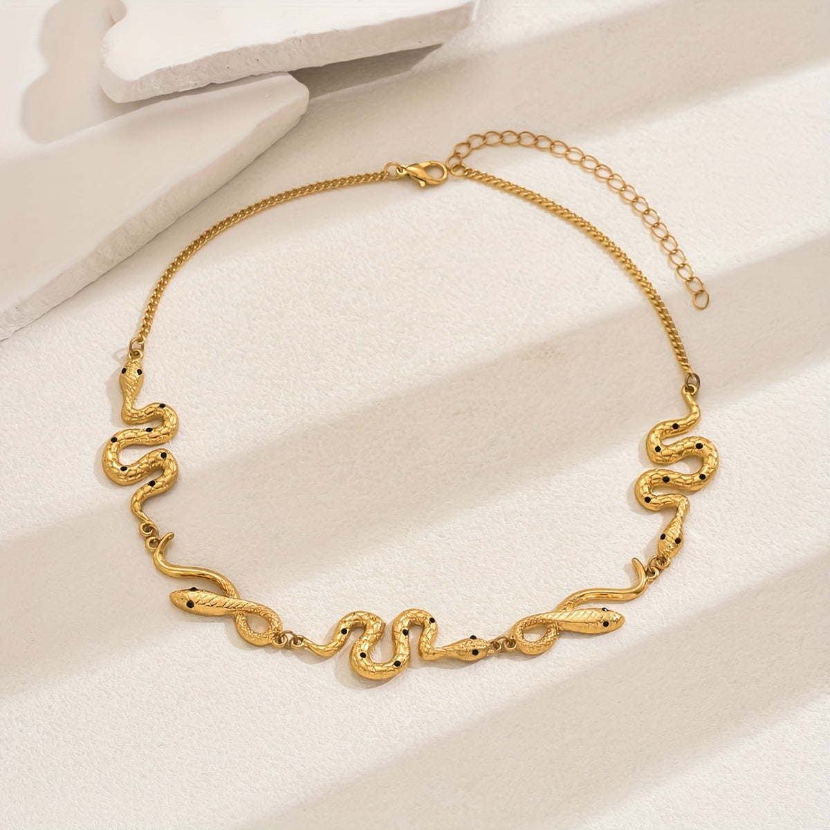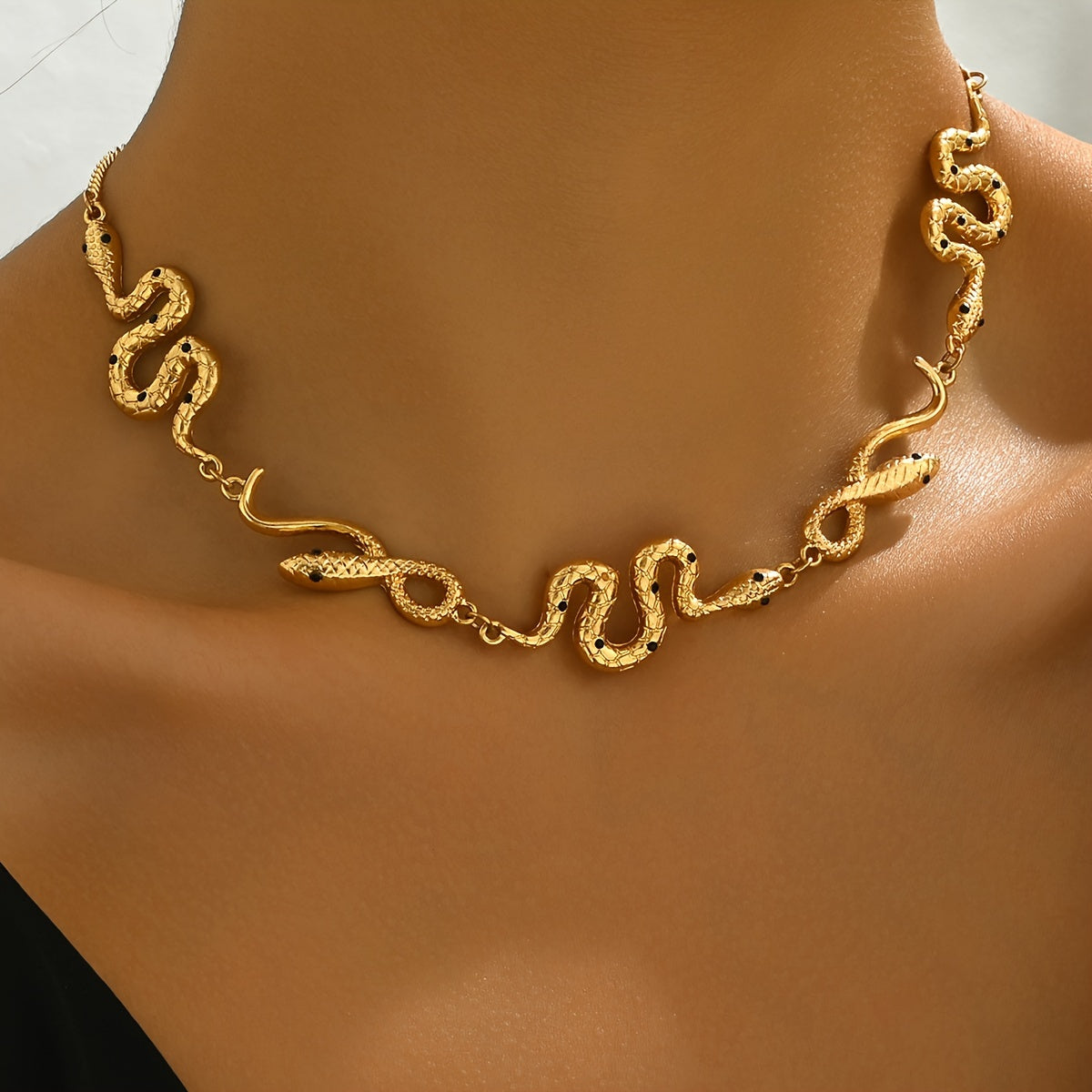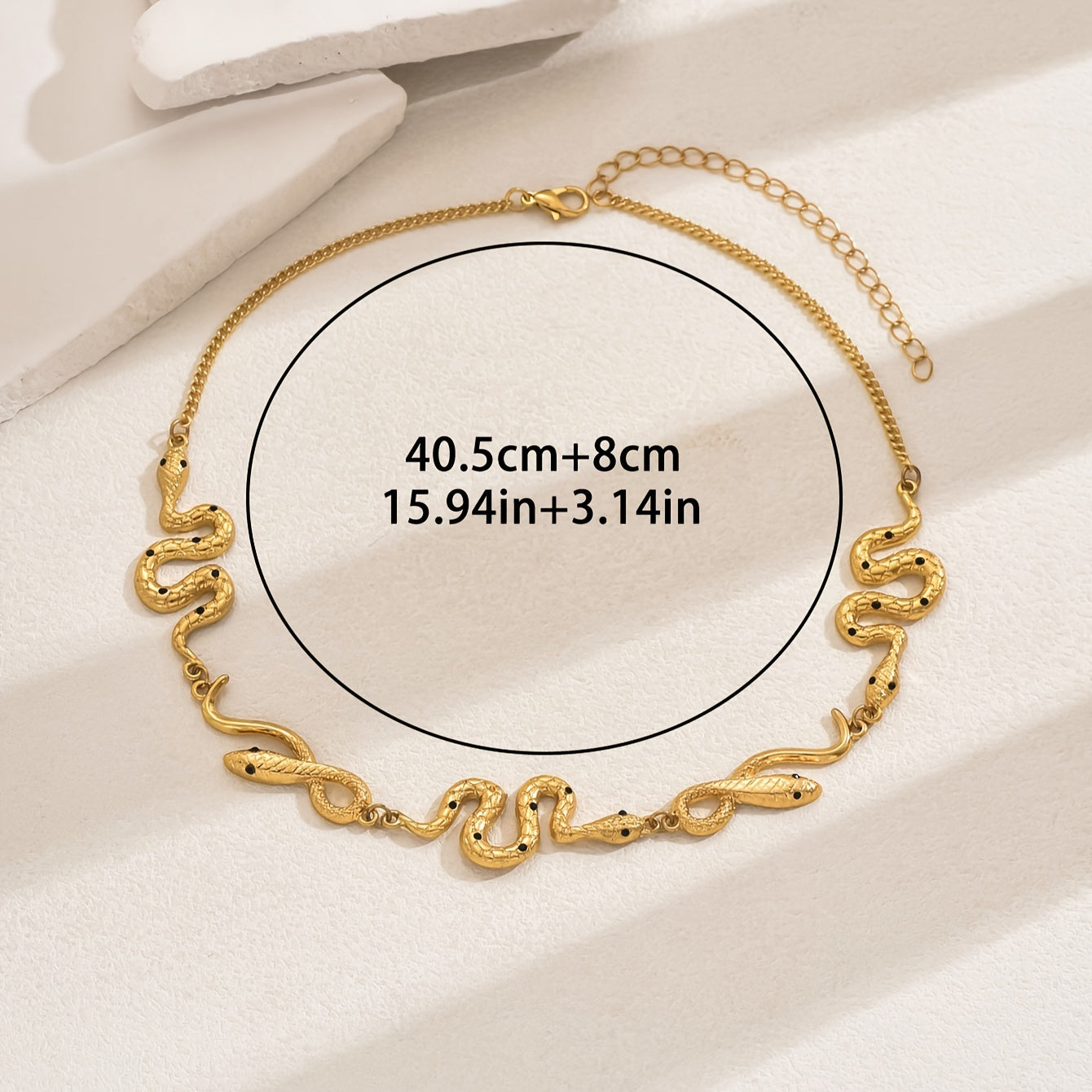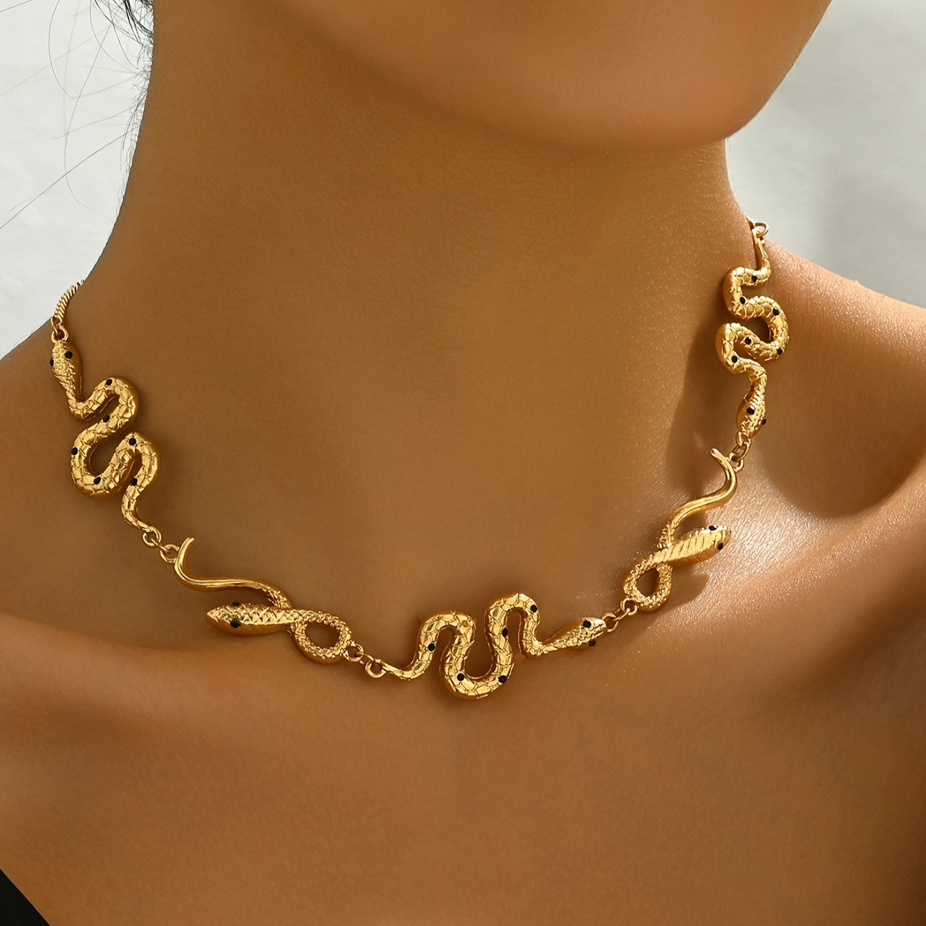 This women's gothic snake pendant necklace features rhinestones and a zinc alloy chain. It is perfect for all seasons, Halloween parties, and sexy DIY looks. Handcrafted collar with an animal theme.