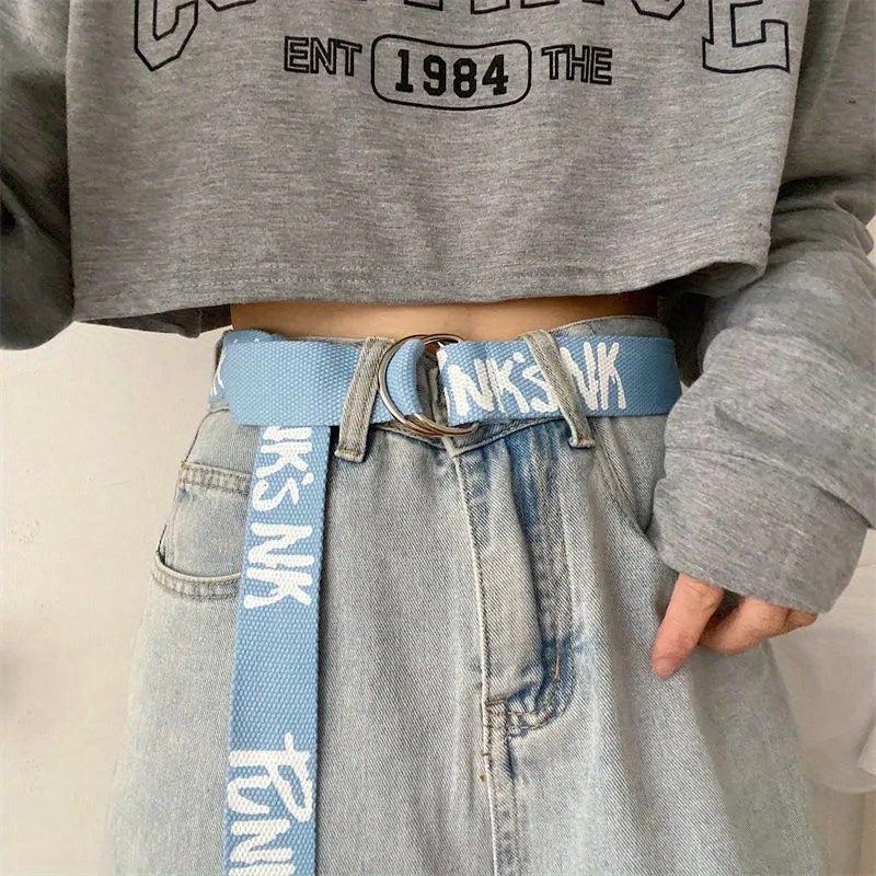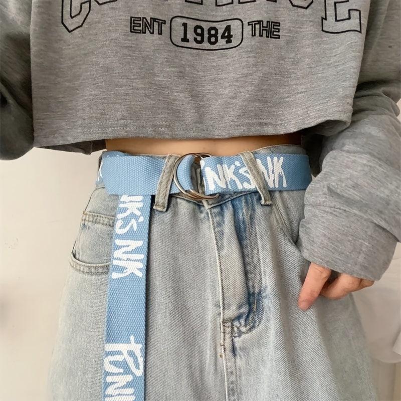 Add flair to your outfit with this graffiti print canvas belt. Perfect for both men and women, this belt is a stylish addition to any casual look.