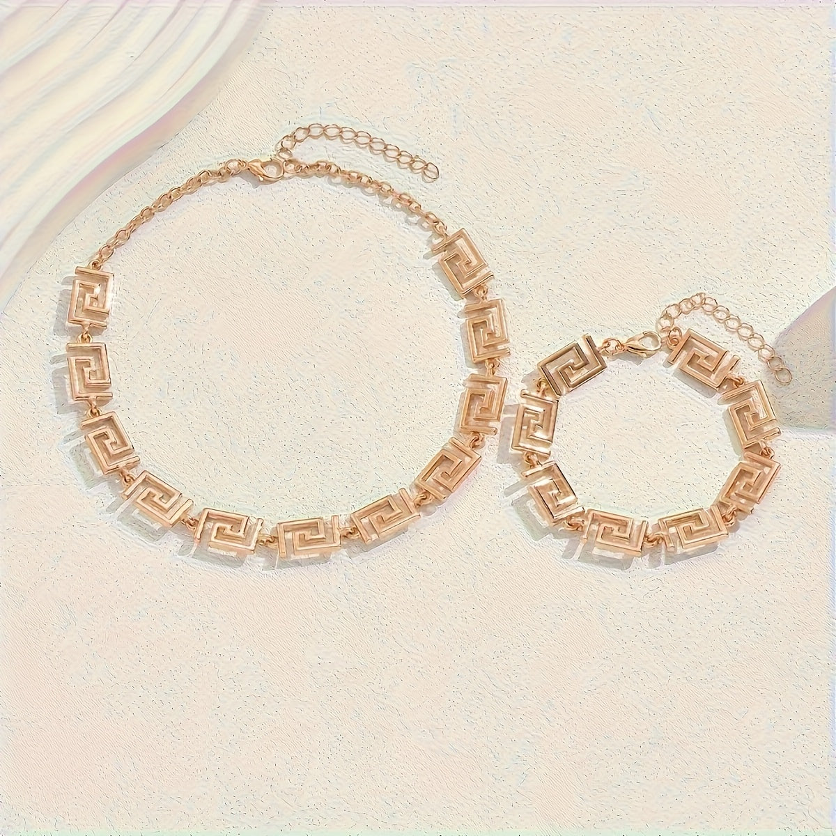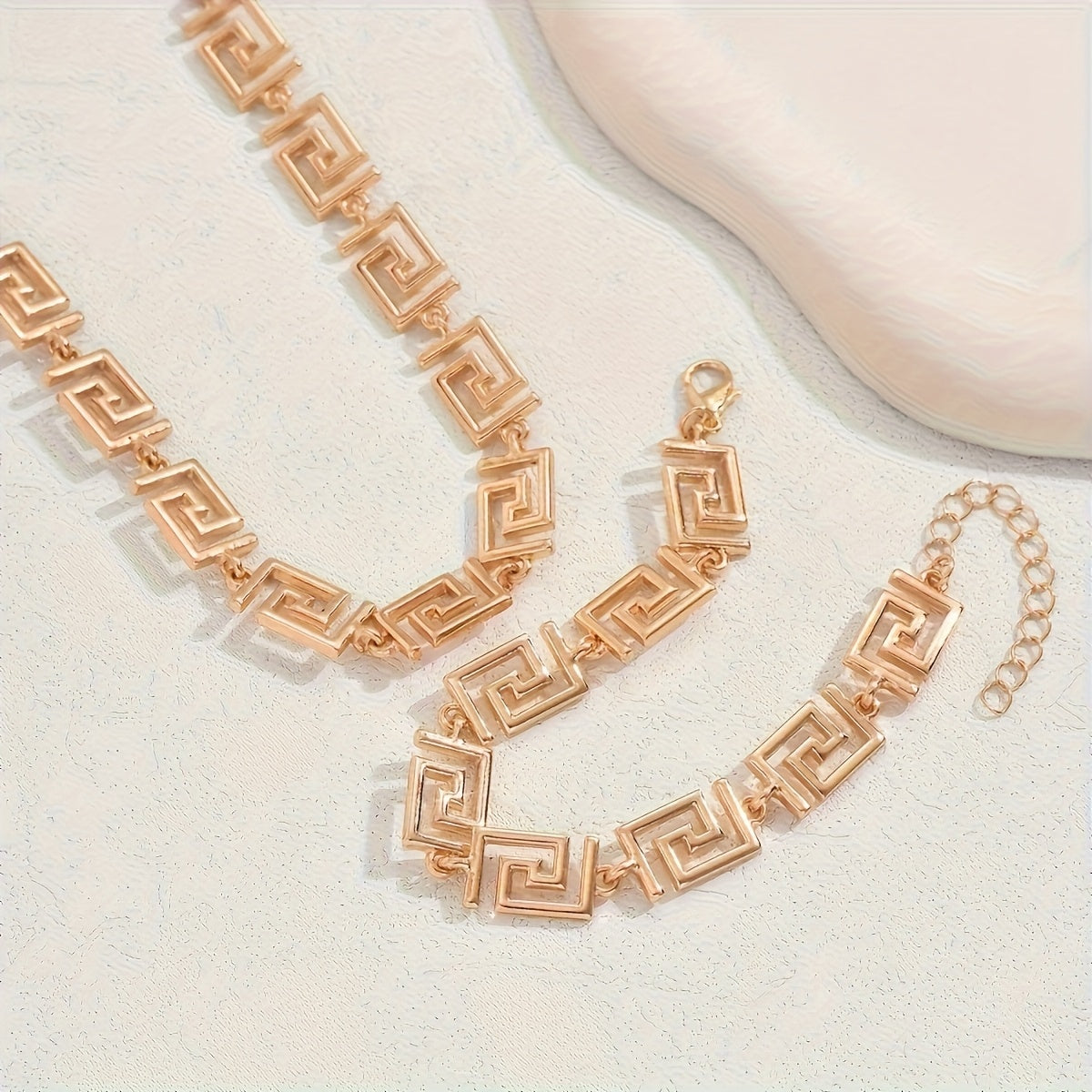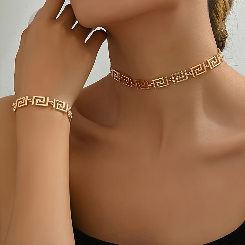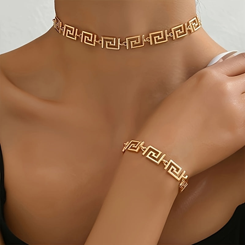 Greek Key Necklace & Bracelet Set - Daily & Party Wear