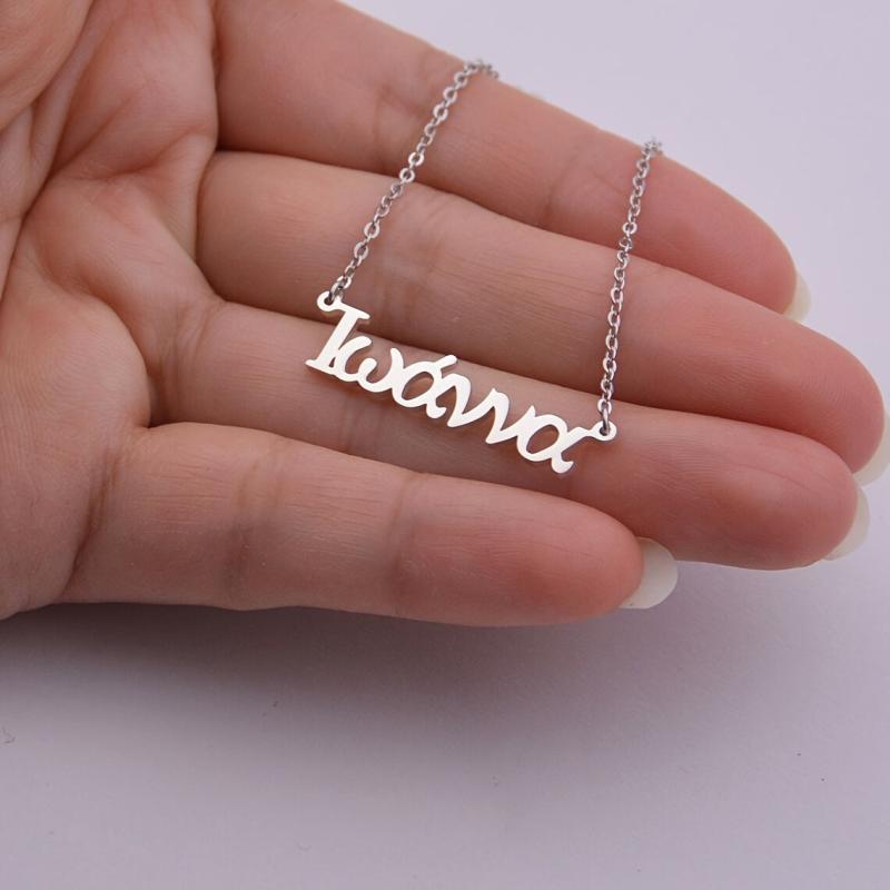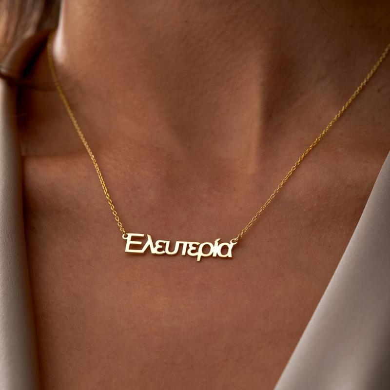 This custom Greek name necklace is made of high-quality 18K golden plated stainless steel. It is a perfect gift for her and can be worn all year round in an ethnic style.