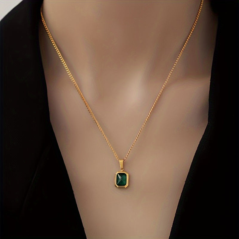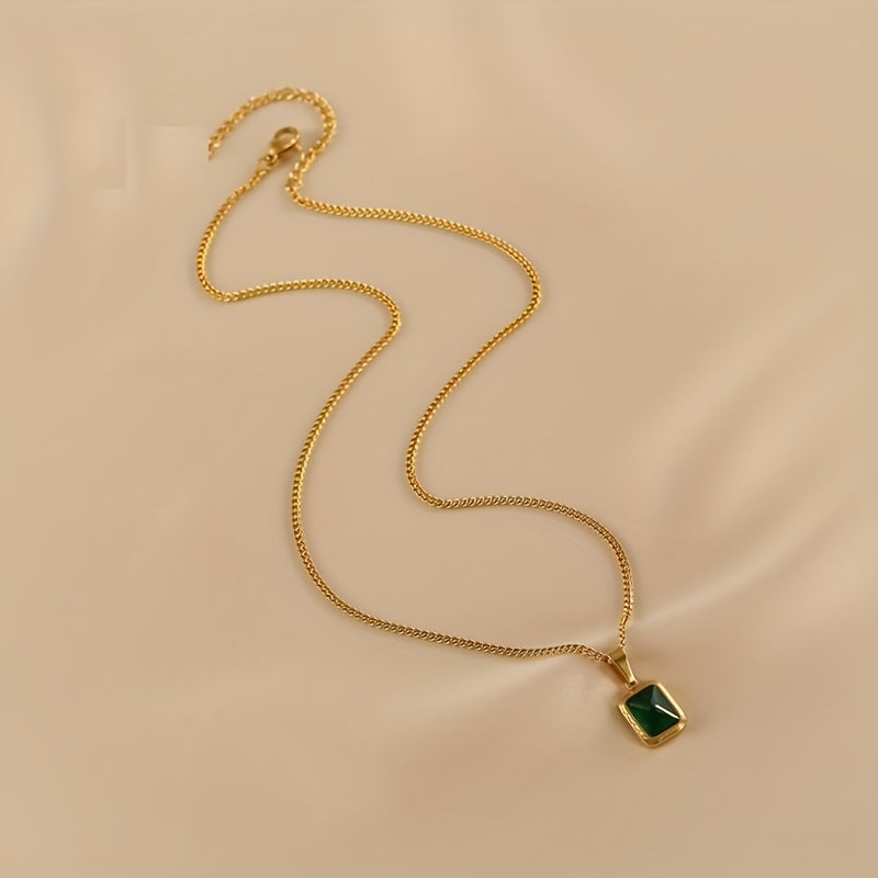 Add a touch of elegance to your daily wear with this classic green rhinestone pendant necklace. Made of zinc alloy with an acrylic green rhinestone, this necklace is the perfect accessory or gift for any occasion.