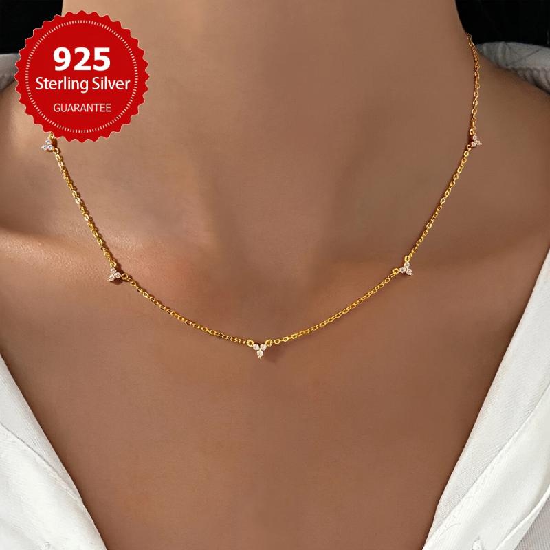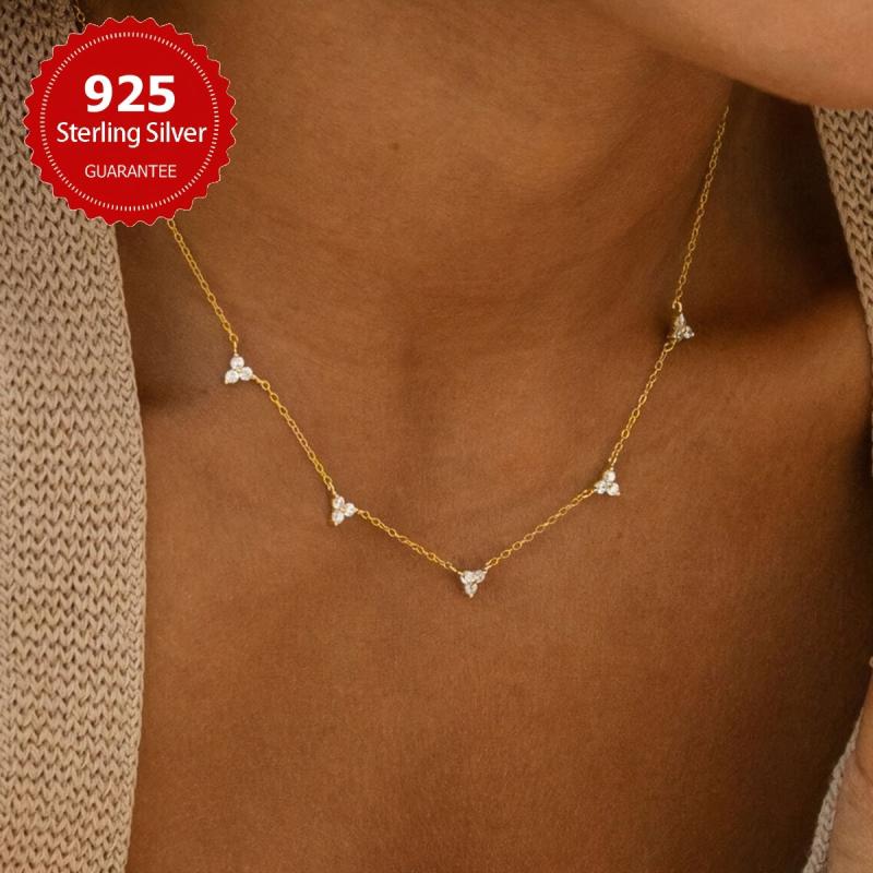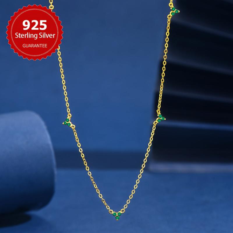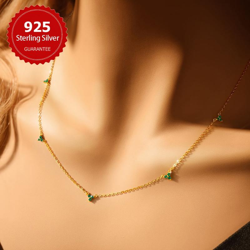 Green Zirconia Necklace S925 Sterling Silver for Date Party