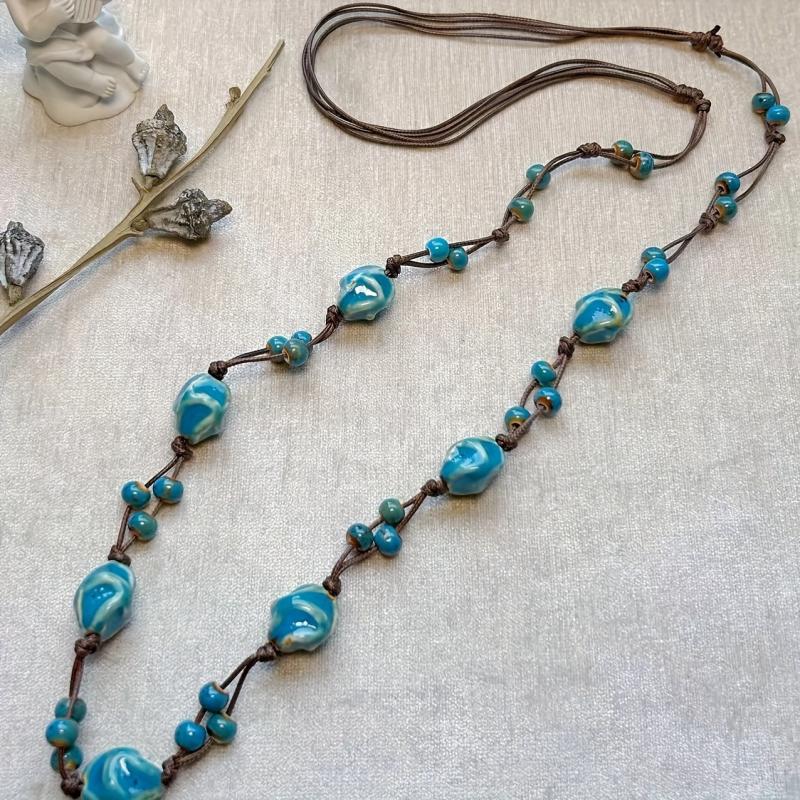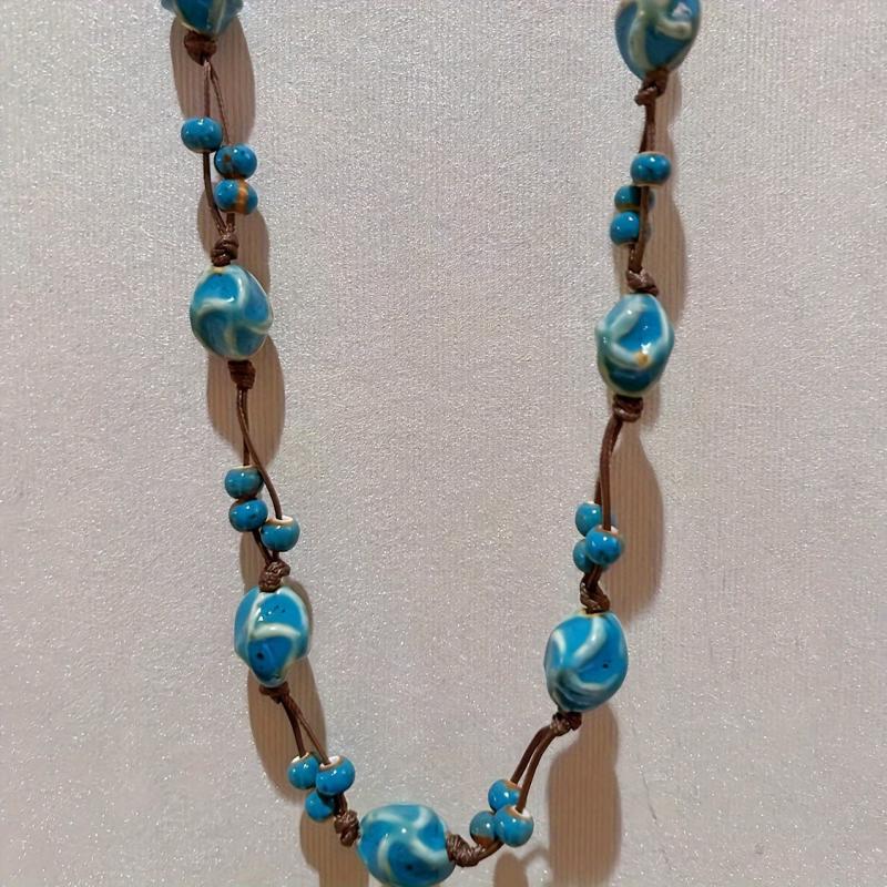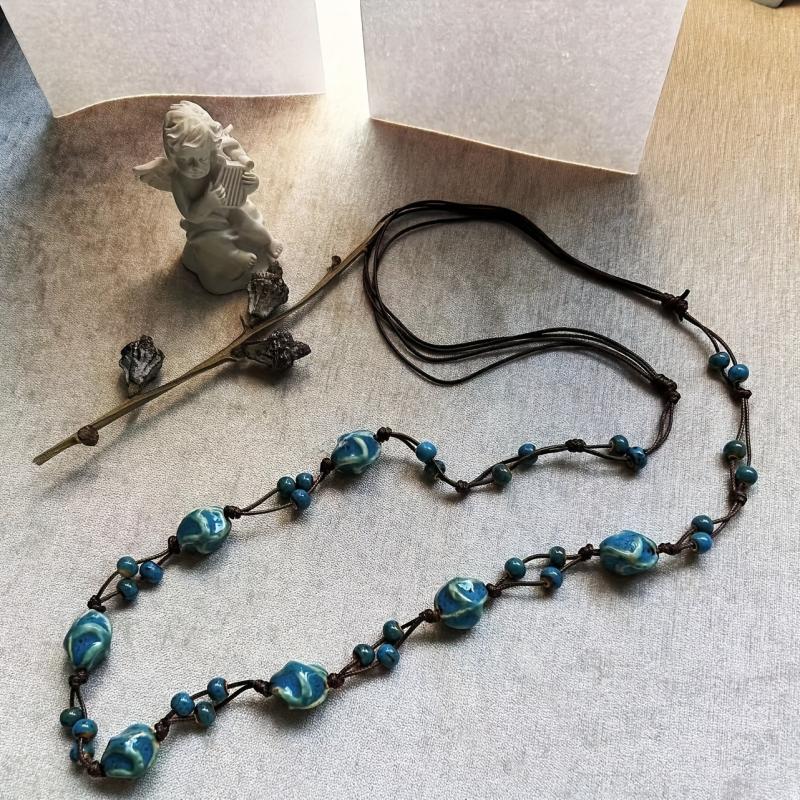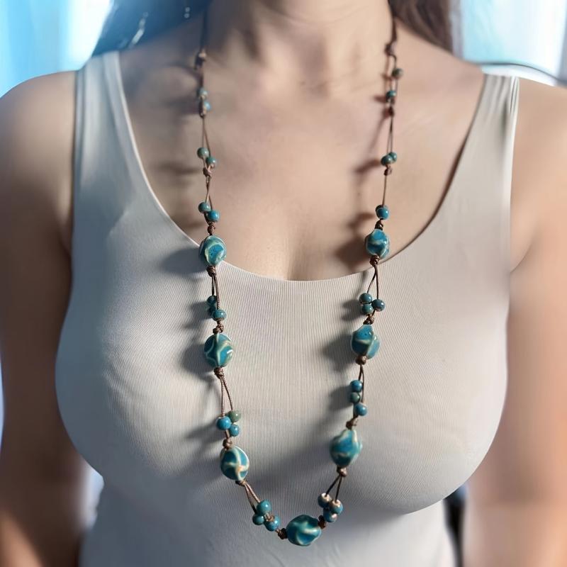 Elevate your daily wear or festive attire with this vintage handcrafted ceramic bead necklace. The irregular beaded design adds a unique touch to your outfit.