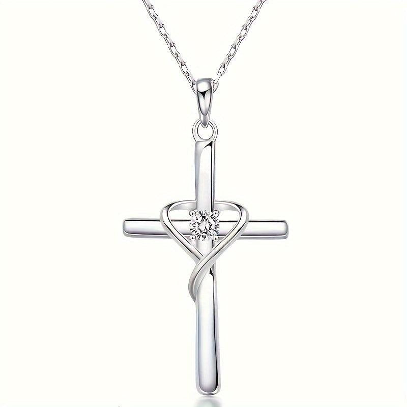 Elevate your style with this stunning heart-shaped cross pendant necklace featuring synthetic cubic zirconia. Ideal for casual outings, parties, and vacations.