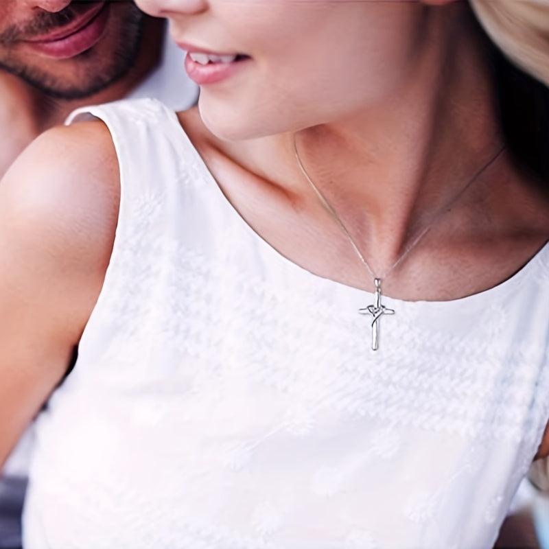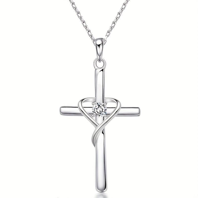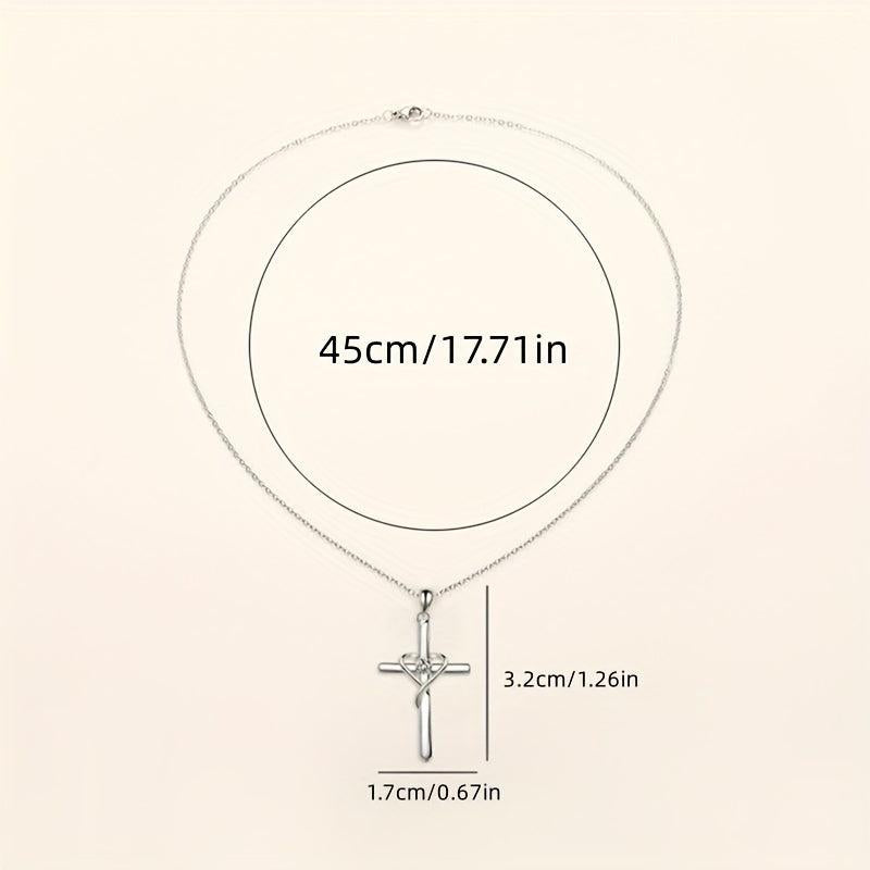 This elegant necklace features a heart cross pendant adorned with synthetic zirconia, perfect for weddings and anniversaries.