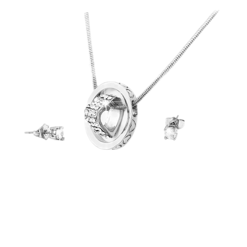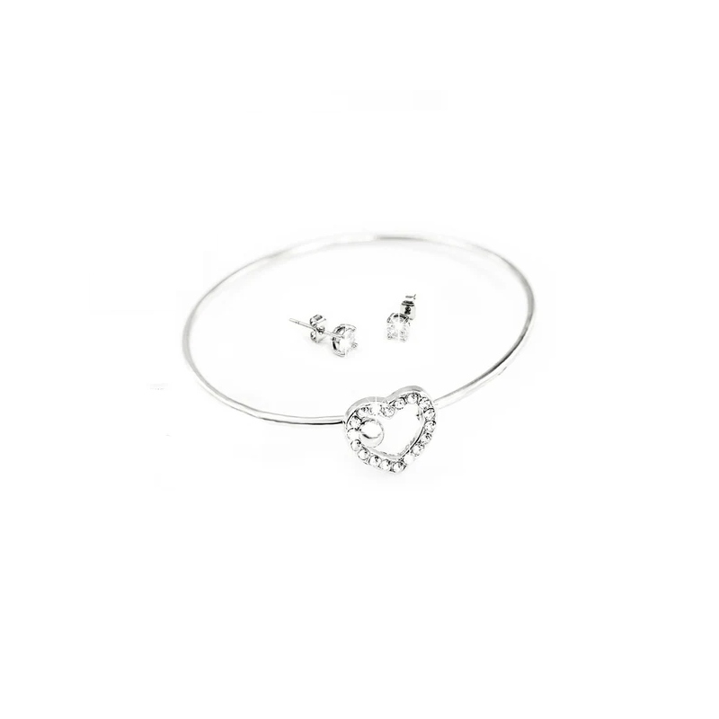 • Silver jewelry set with heart and crystal accents