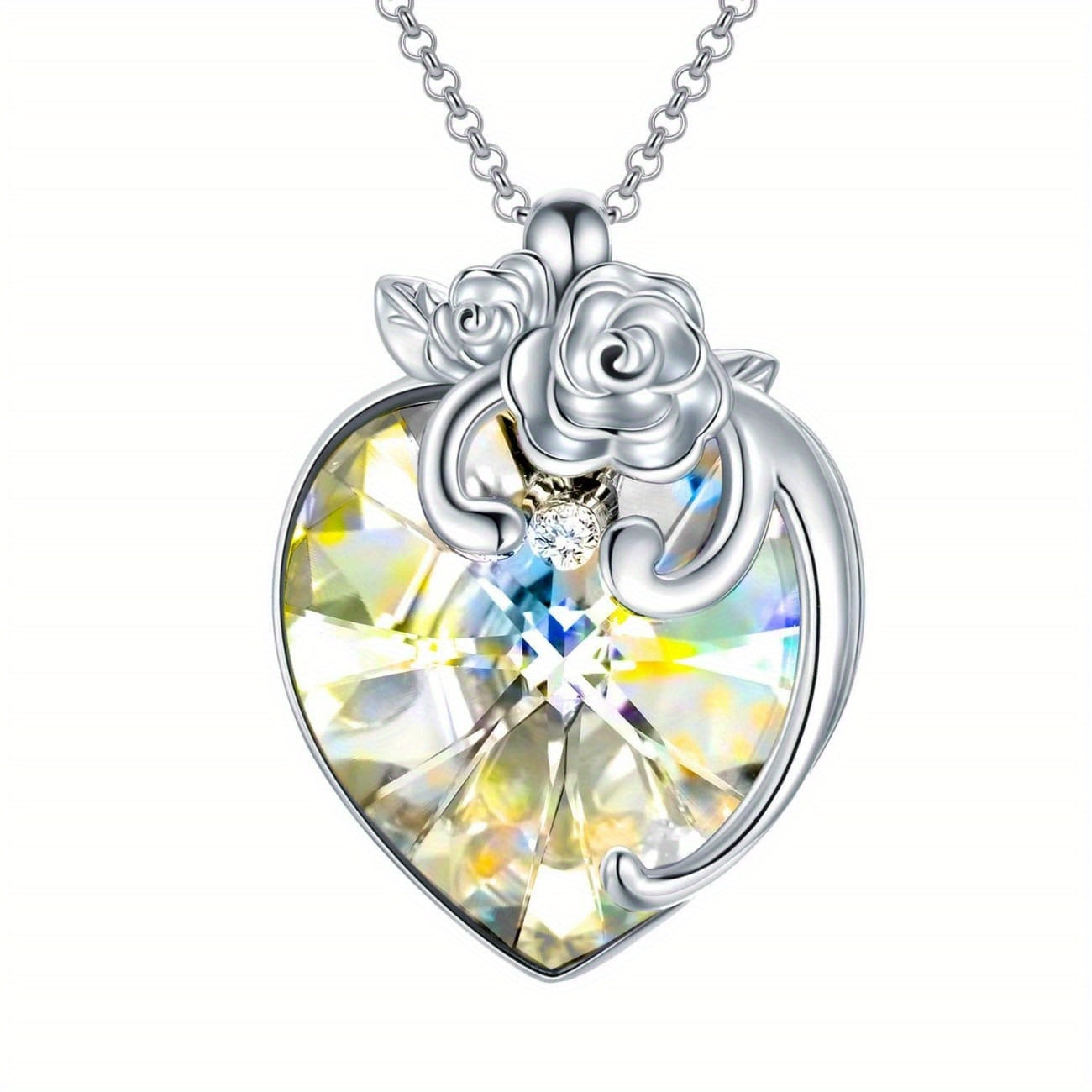 This stunning necklace features a heart-shaped crystal pendant set in 925 sterling silver with a beautiful rose flower design. It makes a perfect gift for your wife, girlfriend, or loved one on Christmas, birthdays, weddings, or any special occasion.