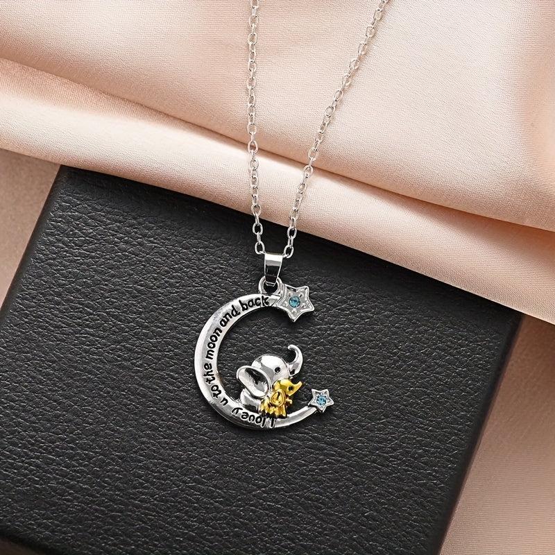 Show your love with this heart-shaped mother in law elephant crescent necklace. A perfect gift for men with a personalized touch.
