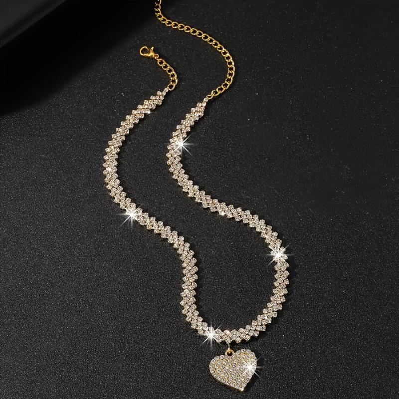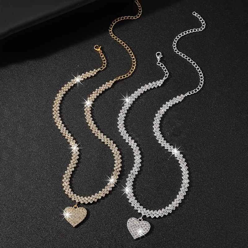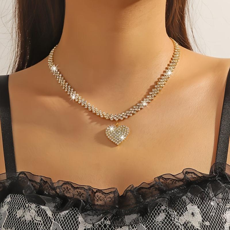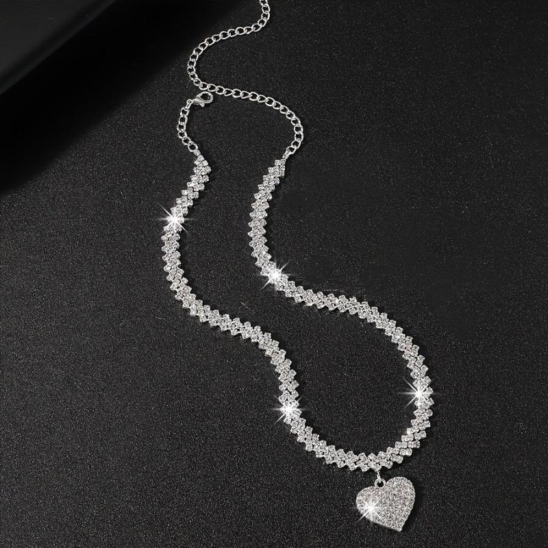 Elegant heart shaped necklace, perfect for adding a touch of glamour to your evening outfit. Ideal for brides and parties.