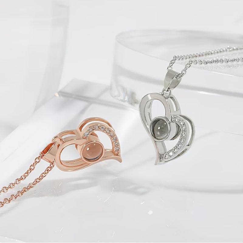 Elegant heart necklace featuring a gemstone and sparkling crystals, perfect for gift, anniversary, or casual attire. This golden plated interlocking hearts pendant exudes charm and sophistication.